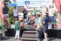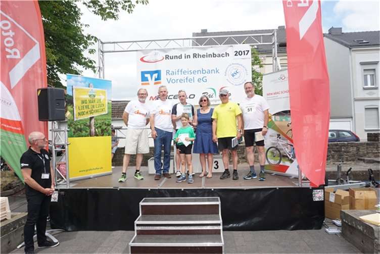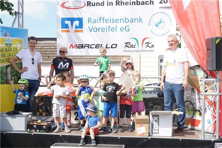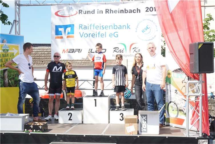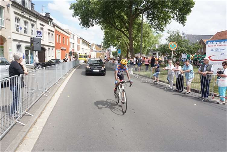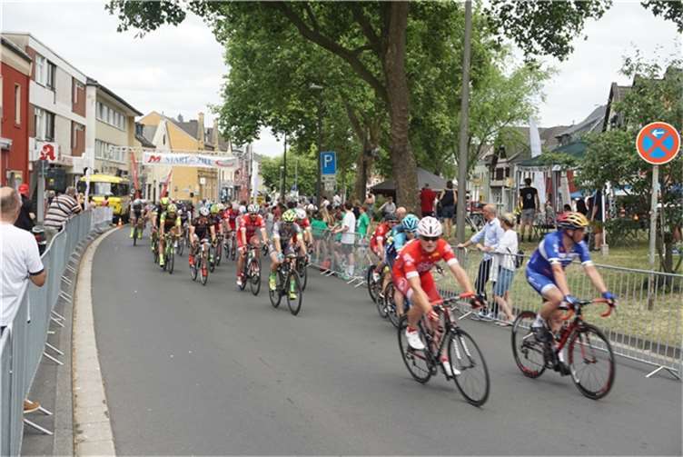 Rheinbach. Um 10 Uhr starteten am dritten Junisonntag die ersten Räder beim Radrennen „Rund“ an der Rennstrecke in Rheinbach. Vier Einlagerennen und zehn Lizenzrennen mit Fahrern aus ganz Deutschland und natürlich vom RSC Rheinbach standen auf dem Programm. Start und Ziel der Rundstrecke lagen in diesem Jahr in der Martinsstraße. Von hier aus ging es knapp 1,5 Kilometer weit über die Turmstraße zur Münstereifeler Straße, weiter über „Vor dem Dreeser Tor“ über den Wilhelmsplatz zurück in die Martinsstraße. Fahrerinnen und Fahrer aller Altersklassen wurden von der Absperrung der Strecke aus bei gutem Wetter angefeuert. Die jüngsten Teilnehmer von drei bis fünf Jahren hatten eine Strecke von 150 Metern zu bewältigen, die vom Wilhelmsplatz bis zum Ziel führte. Wer ein Jahr älter, aber noch nicht zehn Jahre alt war, durfte bei einem weiteren Kinderrennen starten, das über eine Strecke von eineinhalb Kilometern bis zum Ziel führte. Bevor die Kleinen am Nachmittag ihr fahrerisches Können zeigten, waren zu Beginn die Schülerinnen und Schüler aus den Gruppen der unter 13-Jährigen und unter 15-Jährigen gestartet. Sie traten kräftig in die Pedale, um den ARAG Schüler Cup NRW 2017 zu gewinnen. In der Klasse U13 gewannen nach 30 Kilometern auf den ersten drei Plätzen Sina Temmen aus Düsseldorf, Jesper Linus Schmidt aus Rheinbach und Danielo Lork aus Siegburg. In der nächstälteren Gruppe, die ebenfalls 30 Kilometer zurückgelegt hatte, kamen Jan Habermann aus Rheinbach als erster, Mateo Schmitz aus Siegburg als Zweiter und der Rheinbacher Torge Ruben Schmidt als Dritter ins Ziel.