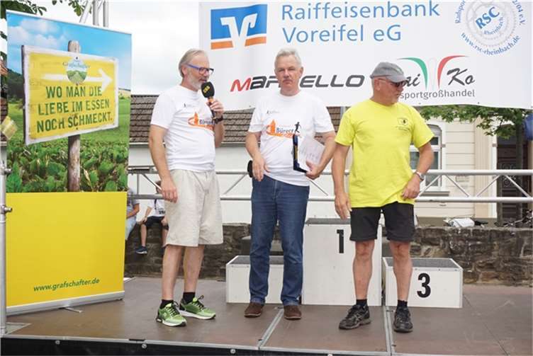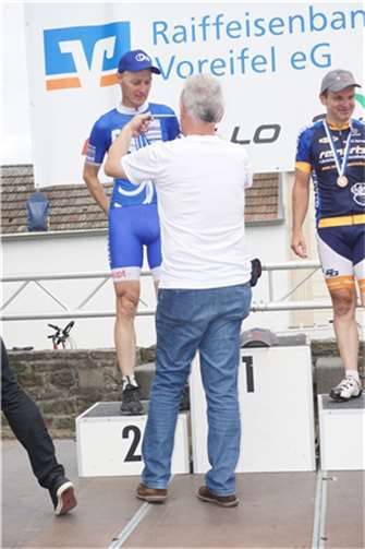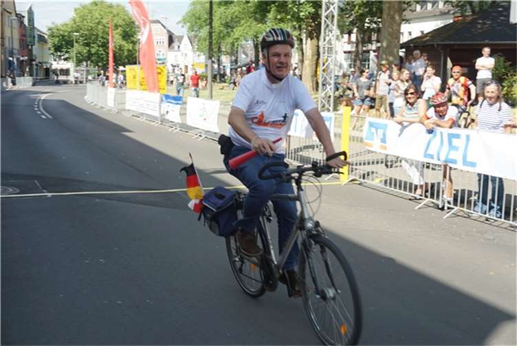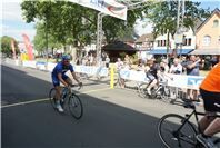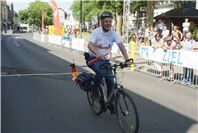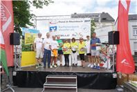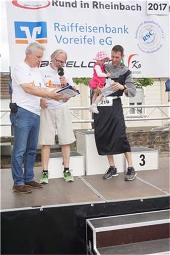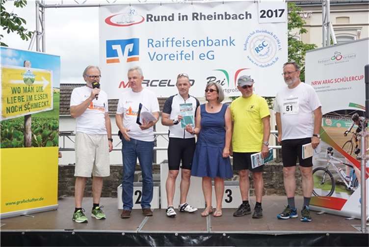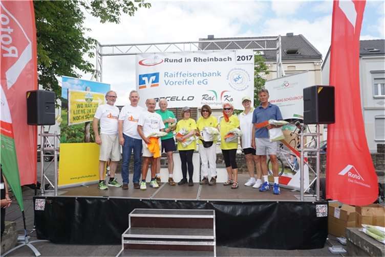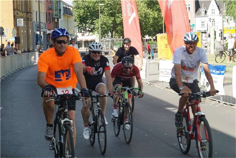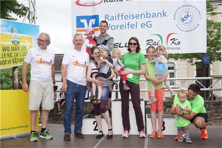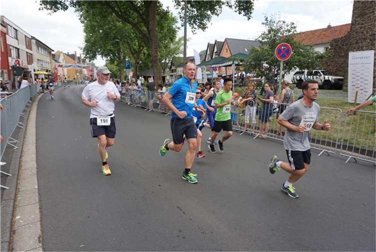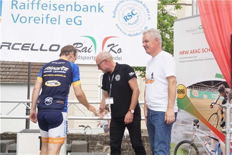 Mittags um zwölf war die Zeit der Radfahrer nur für kurze Zeit für den Rheinbacher Bürgerlauf unterbrochen. Insgesamt sechs Kilometer wurden auf vier Runden bewältigt, um Geld für einen guten Zweck in die Kasse zu spülen. Auch die Prominenz hatte sich für diesen Tag sportlich angesagt. Im Prominenten- und Sponsorenrennen waren Größen aus Politik, Wirtschaft, Gesellschaft und Radsport angekündigt, um den Parcours zu absolvieren. Bevor bekannte Namen wie Stefan Raetz und Silke Josten-Schneider an der Startlinie standen, waren jedoch die Senioren in den Gruppen 2, 3 und 4 am Start. In der Gruppe 2 war nach 30 Runden mit je 1,5 Kilometern Martin Neffgen als Erster im Ziel angelangt. Ihm folgten auf Platz zwei und drei Patrick Vogt und Sven Schmeling. Unter den Senioren 3, 4 waren Jürgen Sopp aus Wuppertal, Jörg Grünefeld aus Bonn und Ralf Dick aus Düren die Schnellsten. Kurz nach 14 Uhr legten sich die Männer aus der Elite-C-Klasse ins Zeug, um auf 40 Runden insgesamt 60 Kilometer zu fahren. Die Erfolgreichsten waren in diesem Rennen Lars Piepenbrinck aus Düsseldorf auf dem ersten Platz, Volker Ernst aus Rheinbach auf dem zweiten Platz und Christian Thomas aus Göttingen. In der KT und A-, B-Klasse starteten nach den beiden Kinderrennen und dem Sponsorenrennen kurz vor 17 Uhr 21 Teilnehmer und legten die längste Strecke des Tages, nämlich 72 Kilometer auf 48 Runden zurück. Hier siegten Simon Happel, Moritz Backofen und Tim Gebauer.
