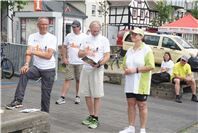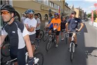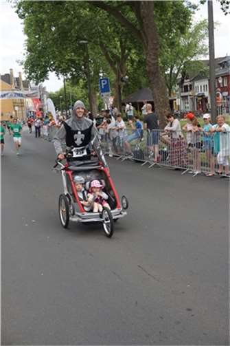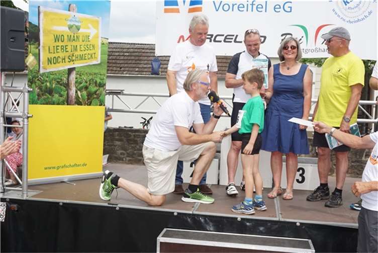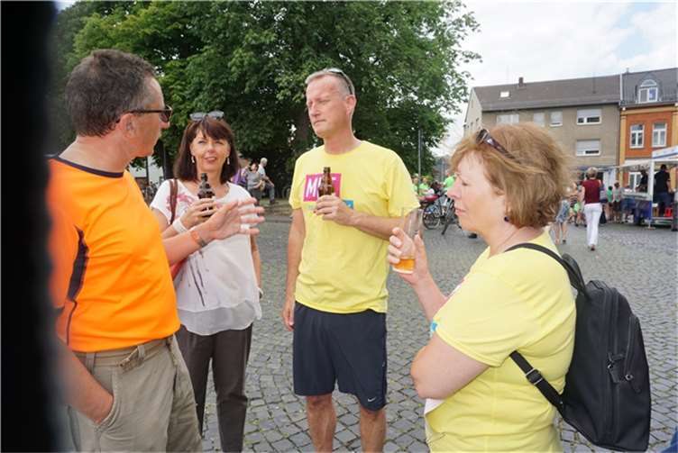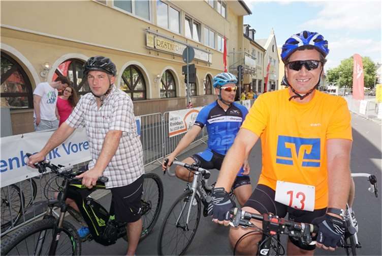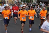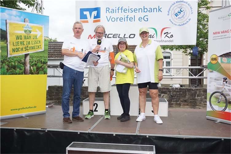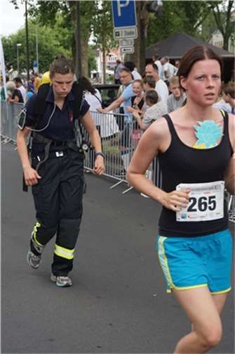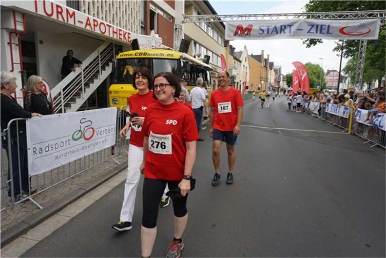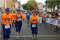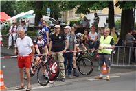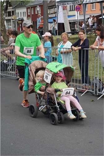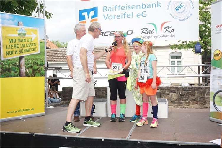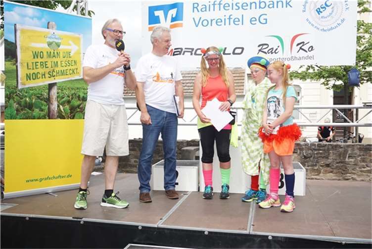 Mittags um zwölf war die Zeit der Radfahrer nur für kurze Zeit für den Rheinbacher Bürgerlauf unterbrochen. Insgesamt sechs Kilometer wurden auf vier Runden bewältigt, um Geld für einen guten Zweck in die Kasse zu spülen. Auch die Prominenz hatte sich für diesen Tag sportlich angesagt. Im Prominenten- und Sponsorenrennen waren Größen aus Politik, Wirtschaft, Gesellschaft und Radsport angekündigt, um den Parcours zu absolvieren. Bevor bekannte Namen wie Stefan Raetz und Silke Josten-Schneider an der Startlinie standen, waren jedoch die Senioren in den Gruppen 2, 3 und 4 am Start. In der Gruppe 2 war nach 30 Runden mit je 1,5 Kilometern Martin Neffgen als Erster im Ziel angelangt. Ihm folgten auf Platz zwei und drei Patrick Vogt und Sven Schmeling. Unter den Senioren 3, 4 waren Jürgen Sopp aus Wuppertal, Jörg Grünefeld aus Bonn und Ralf Dick aus Düren die Schnellsten. Kurz nach 14 Uhr legten sich die Männer aus der Elite-C-Klasse ins Zeug, um auf 40 Runden insgesamt 60 Kilometer zu fahren. Die Erfolgreichsten waren in diesem Rennen Lars Piepenbrinck aus Düsseldorf auf dem ersten Platz, Volker Ernst aus Rheinbach auf dem zweiten Platz und Christian Thomas aus Göttingen. In der KT und A-, B-Klasse starteten nach den beiden Kinderrennen und dem Sponsorenrennen kurz vor 17 Uhr 21 Teilnehmer und legten die längste Strecke des Tages, nämlich 72 Kilometer auf 48 Runden zurück. Hier siegten Simon Happel, Moritz Backofen und Tim Gebauer.