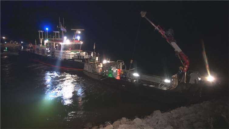 Aufwendige Bergung: Pkw bei Urmitz in den Rhein gefahren