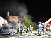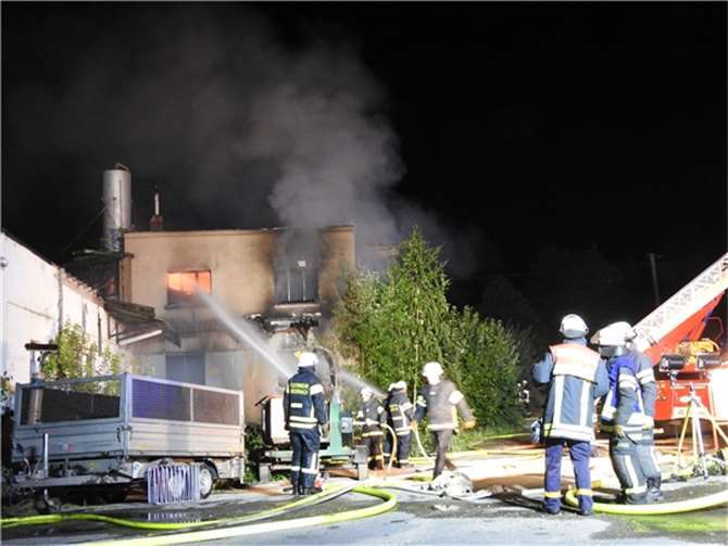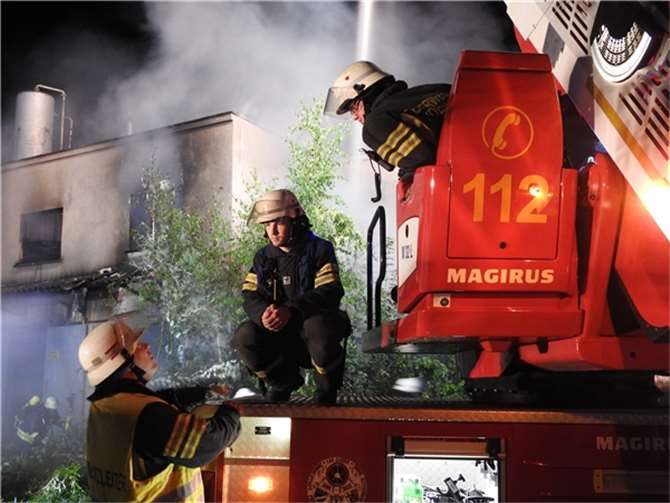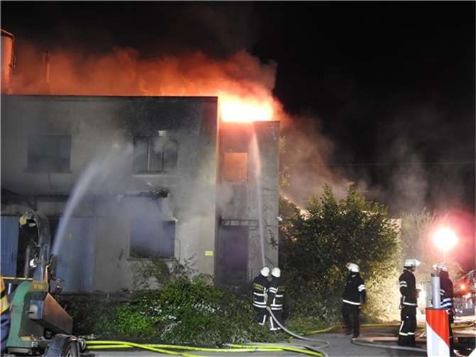 Andernach. In der Nacht zum Freitag, 27. Juli, wurde um 2:10 Uhr über die Leitstelle Koblenz ein Brand in Andernach/Miesenheim gemeldet. Im Gewerbegebiet an der Saffiger Straße (Ortsausgang Miesenheim Richtung Saffig) war ein leerstehendes Industriegebäude in Brand geraten. Da das Gebäude im Vollbrand stand, wurde in Miesenheim Sirenenalarm ausgelöst. Mit 45 Feuerwehrleuten und sieben Fahrzeugen ging man gegen den Brand vor. Als schwierig erwies es sich, dass in dem Gebäude sehr viel Holz zur Decken-, Zwischendecken- und Fußbodenverkleidung genutzt wurde. Schnelle schlugen die Flammen durch das Dach und ein Ablöschen gestaltete sich schwierig. Ein Begehen des Gebäudes war aufgrund der Einsturzgefahr nicht möglich, so das man dieses fast nur kontrolliert abbrennen lassen konnte. Nebenstehende Gebäude mussten gegen das Übergreifen der Flammen geschützt werden. Gegen 8:00 Uhr konnten dann die Aufräumarbeiten beginnen. Mit im Einsatz waren auch die Polizei Andernach sowie das DRK mit jeweils zwei Fahrzeugen. Personen kamen glücklicherweise nicht zu Schaden. Die Brandursache und die Schadenshöhe stehen noch nicht fest. -WAM-