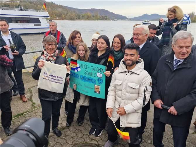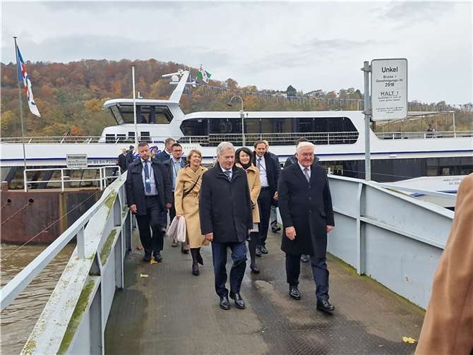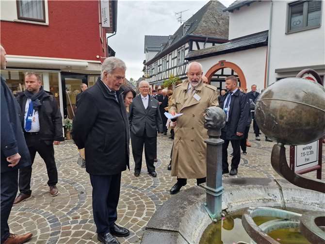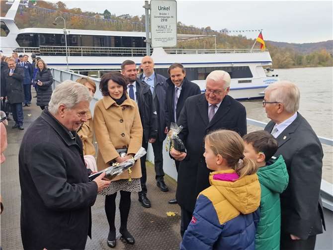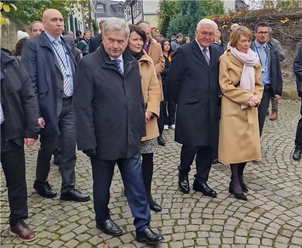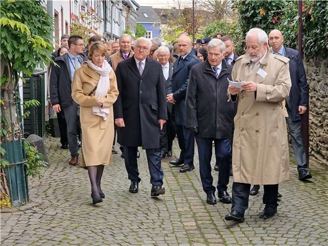 Unkel. Anlässlich des 50-jährigen Jubiläums der Aufnahme diplomatischer Beziehung zwischen der Bundesrepublik Deutschland und der Republik Finnland haben Bundespräsident Frank-Walter Steinmeier und Gattin Elke Büdenbender den finnischen Präsidenten Sauli Niinistö sowie dessen Ehefrau Jenni Haukio zu einem Staatsbesuch in Deutschland empfangen. Nachdem die beiden Staatsoberhäupter den gestrigen Tag in Bonn verbrachten, besichtigten sie heute die Unkeler Altstadt.