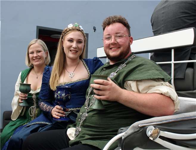 Heimersheim. Schon 2022 feierte das Heimersheimer Weinfest nach Corona und Flut sein Comeback, doch erst in diesem Jahr war das Traditionsevent wieder auf bewährte Weise am Start. Mit frischem Wind, neuem Organisationsteam und neuen wie bewährten Inhalten frönte man dem mittelalterlichen Treiben ebenso, wie dem heimischen Wein und dem Dorfzusammenhalt. Denn eben jener Zusammenhalt innerhalb von Heimersheim ist der Garant dafür, dass das Historische Weinfest seit mehr als zweieinhalb Dekaden so erfolgreich ist. Ob Junggesellenverein, KG Närrische Landskroner, Schützenbruderschaft oder Kellerkinder – sie alle engagieren sich auf vielfältige Weise. Der freitägliche Festauftakt stand wie immer ganz im Zeichen der neuen, feierlich inthronisierten Weinkönigin. Diese Ehre wird 2023/24 Christin I. (Robrecht) zuteil. Die 26-jährige, angehende Berufsschullehrerin lernte schon bei ihrem Opa die Bewirtschaftung der Weinberge kennen und arbeitet seit über sechs Jahren nebenberuflich im Recher Weingut Oliver Schell. „Hier entwickelte sich meine Leidenschaft für Wein und ich lernte, wie viel Arbeit hinter jeder Flasche steckt. Als Weinkönigin möchte ich mein Wissen und meine Liebe zum Wein mit vielen Menschen teilen“, so die neue Regentin, der Hofdame Angelina Nachtsheim und Junker Felix Lüdenbach zur Seite stehen.