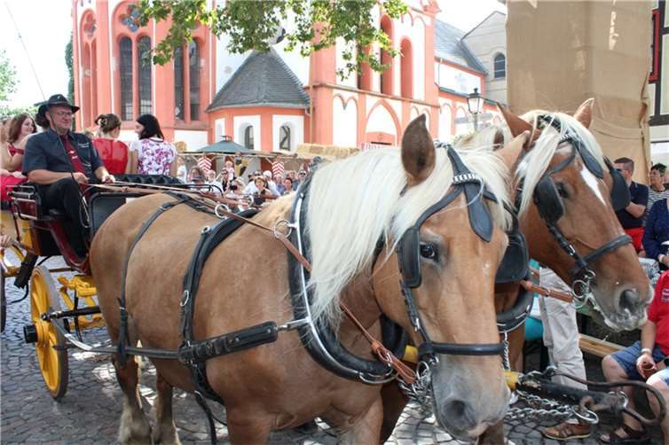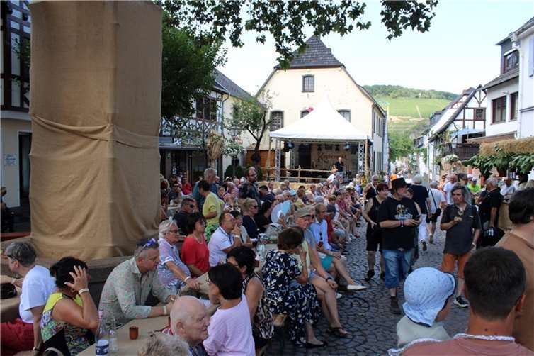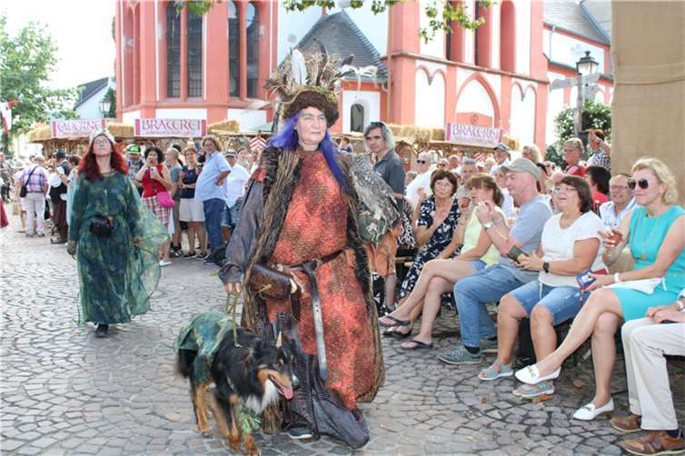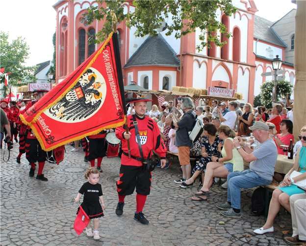 Samstags lockten dann das obligatorische, mittelalterliche Markttreiben mit Gauklern, Edelleuten, Bauernvolk und zahlreichen Ständen in den Ortskern, bevor sich tags darauf der Festumzug durch Heimersheim zog. Hierbei waren nicht nur die Ortsvereine, sondern unter anderem auch Landsknechte, Falkner und verschiedene Fanfarenzüge beteiligt. Strahlendes Highlight war dabei fraglos Weinkönigin Christin I. samt Gefolge und festlich geschmückter Kutsche. Wie eh und je erinnerte auch das Speisen- und Getränkeangebot mit „Fürstenbraten“, „Knappenwurst“ oder „Lanzenbrot“ an jene Zeiten, als auf der nahen Burg Landskrone noch Ritter residierten. Das Publikum kam trotz sommerlich-schwüler Hitze reichlich – auch zum abschließenden Höhenfeuerwerk - so dass die Organisatoren ein rundum positives Weinfest-Fazit ziehen konnten.