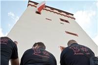 Weißenthurm. Am Samstag 25. Mai wurde die Kirmes in Weißenthurm bei wunderschönstem Frühlingswetter feierlich eröffnet. Nachdem am Freitag davor bereits mit Livemusik von der Band A-Team bis in die späten Abendstunden ausgelassen gefeiert wurde, waren Samstag-Mittag alle beteiligten Vereine wieder auf den Beinen. Die Ka & Ki, Große Karnevals- und Kirmesgesellschaft Weißenthurm 1949 e.V. versammelte alle Aktiven am Wahrzeichen der Stadt, dem weißen Eulenturm, zum Start für den Festumzug. Und weil es ja so schön ist endlich mal wieder zusammen zu stehen, verzögert sich der Abmarsch mit allen die den Kirmesbaum zum Festplatz begleiten um einige Minuten. So viel Zeit muss sein. Besonders hilfsbereit und präsent ist bei dem Festzug und Aufstellen des Kirmesbaumes die Feuerwehr. Mit Baum, Musikzug und allen Beteiligten setzt sich der Festzug in Bewegung, um am Kirmesplatz zuerst das Wahrzeichen der Kirmes aufzustellen. Nur wenige Meter vom Rhein entfernt, am Thur, wird der Kirmesbaum von der Feuerwehr zuerst abgelegt, mit einem Hebekran in Stellung gebracht und zum Schluss mit einem großen runden Kranz und bunten Bändern die im Wind flattern dekoriert. Der Eingang zum großen Kirmesplatz ist jetzt unübersehbar markiert. Groß ist tatsächlich für den Platz überhaupt nicht übertrieben! Mit diesem Umfang und den aufgestellten Fahrgeschäften und Kirmesbuden kann sich Weißenthurm locker mit anderen großen Städten messen. Nachdem der Baum steht, folgt der offizielle Teil der Kirmeseröffnung. Präsident vom Ka & Ki Mirco „Howie“ Hauschild begrüßt alle Gäste und heißt Herzlich Willkommen am Thur. Weil die Kirmes nahtlos mit dem Karneval verbunden ist, wird auch hier traditionsgemäß 3mal ausgerufen „Thur Alaaf“. Er bedankt sich bei allen Aktiven und übergibt das Wort an Ritter Kuno von Falkenstein der im richtigen Leben Frank Ackermann heißt und auch als Tollität Prinz Frank der Erste im Karneval regiert. In seinem Rittergewand betont er vor allem, dass die Kirmes in Weißenthurm beständig fortgesetzt werden muss. Anschließend hat Bürgermeister Gerd Hein das Wort, übernimmt mit Freude den Holzhammer, um das Fass mit Bier feierlich anzuschlagen und um das erfrischende Freibier anzuzapfen. Nach drei gezielten Schlägen und dem Ausruf „Die Kirmes ist eröffnet“ werden die gefüllten Gläser mit Unterstützung der beiden Pagen Thomas Lembgen und Kai Ehmann verteilt. Insgesamt traditionell vier Tage wird in Weißenthurm gefeiert und das soll auch so beibehalten werden, mit Livemusik, großen und kleinen Fahrgeschäften, Kirmesbuden, Festumzug, Kinderbelustigung, Frühschoppen, Döppekooche, Tombola und Feuerwerk. Kirmes am Thur, direkt am Rhein so muss Kirmes in Weißenthurm sein!