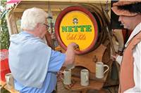 Bei der feierlichen Eröffnung der Kirmes: v.li. Eric Kamp von der Bitburger Brauereigruppe, Thomas Armbrustmacher Vorsitzender vom Förderverein, Page Thomas Lembgen, Ritter Kuno von Falkenstein alias Frank Ackermann, rechts neben Fass: Page Kai Ehmann, Bürgermeister Gerd Hein, Präsident Mirco „Howie“ Hauschild, Johannes Juchem 1. Beigeordneter der Stadt Weißenthurm. Fotos: SCH