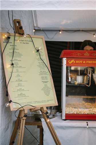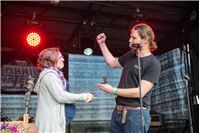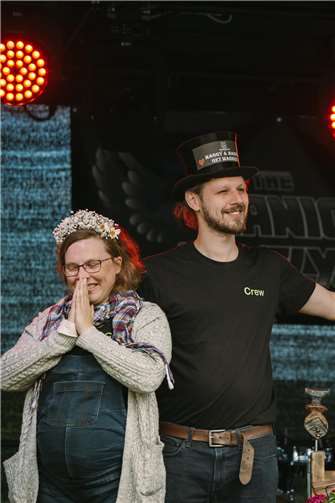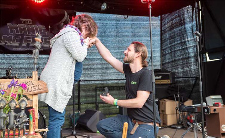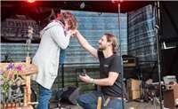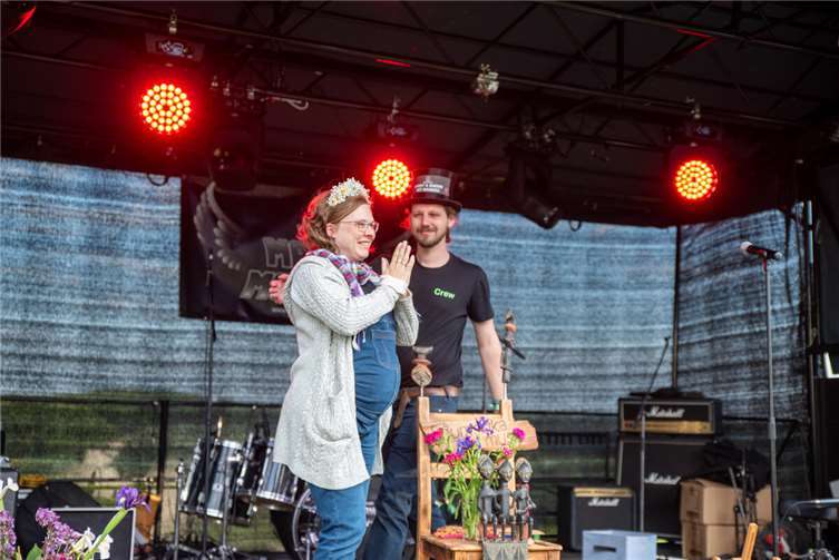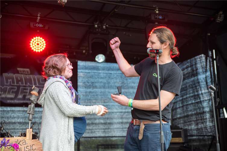 Martin Reichstein, 1. Vorsitzender des Kulturvereins Bracken e.V. führte charmant und souverän durch das Programm – und hatte einige Überraschungen im Gepäck. Neben seinem eigens für das Festival komponierten Song über die Entstehung des Festivals und das Leben in der Dorfgemeinschaft, setzte er dem Abend die Krone auf: Nach einem gefühlvollen Song ging er vor seiner schwangeren Lebensgefährtin Maggy auf die Knie und stelle die wohl wichtigste Frage seines Lebens: „Willst du mich heiraten?“ Die Menge jubelte und Tränen flossen.