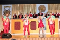 Nach der Pause überraschten die Ettringer Möhnen, die mit einer humorvollen Show „Tag am Meer“. Spannende Showeinlagen mit kreisenden Haien versetzten die Möhnen in Angst und Schrecken. Der Eisverkäufer Winfried Münch (neuer Träger des Pegasus-Ordens der Rhein-Zeitung) und spritzige Gesangseinlagen besänftigten die Haie sichtlich.