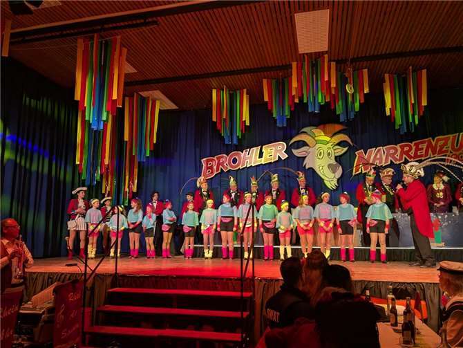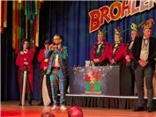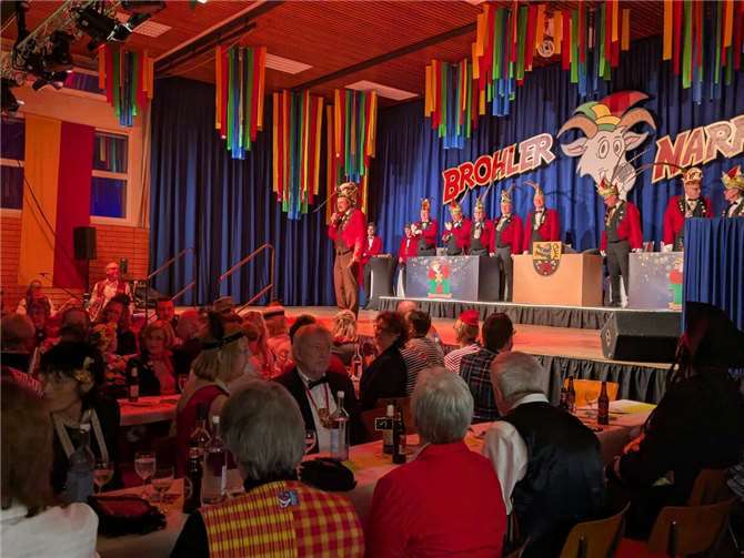 Brohl. Ein außergewöhnlich närrisches Jubiläum kann in diesem Jahr die Brohler Narrenzunft 1904 e.V. feiern: Auf 11 x11 (oder 121) Jahre Tradition kann sie zurückblicken. Kein Wunder also, dass sich in der ausverkauften Turnhalle in Brohl zahlreiche gutgelaunte Narren und Närrinnen eingefunden hatten, um bei der Kostümsitzung am letzten Samstag im Januar dabei zu sein. Mit Eröffnung der Sitzung um 19:11 Uhr startete ein buntes Programm, bei dem zeitweilig bis zu drei Prinzen samt Gefolge auf der Bühne standen.
