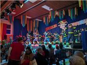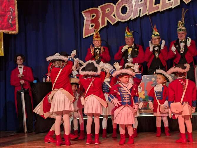 Doch zunächst eroberte der Nachwuchs die Bühne: Das Kinderkorps entzückte die Zuschauer mit seiner Tanzeinlage. Das Prinzenpaar der KG Bad Breisig hatte dann seinen ersten auswärtigen Auftritt und sorgte mit seinem Hofstaat für Glanz auf der Bühne, der sich noch steigerte, als die Tollitäten aus Sinzig dazu kamen. Blumen und Orden wurden getauscht, bevor die Blau-Roten Funken aus Bad Breisig ihr Können zeigten.