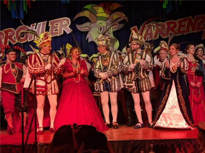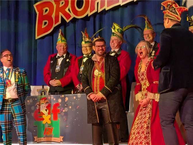 Zu den Gästen gehörten neben Vertretern befreundeter Vereine auch Gäste aus Politik und Wirtschaft. Getränke gab es im Saal, Hungrige wurden am Food Truck im Hof versorgt, für die Musik sorgten die Rhein-Ahr Spatzen. Prinz Tobi der I. regiert die Brohler Narren im zweiten Jahr – seit 1960 gibt es alle zwei Jahre einen neuen Prinzen mit Gefolge. Unterstützt wird er dabei von Prinzessin Monique I. , drei Fürstenpaaren und dem Hofnarr. Fürst Stilli (Sebastian Still) wurde im Laufe des Abends noch für seine besonderen Verdienste ausgezeichnet: Er sei immer hilfsbereit, würde sich sehr für die Narrenzunft engagieren und die meisten der Sessionsorden der letzten Jahre seien von ihm entworfen worden, hieß es zur Begründung.