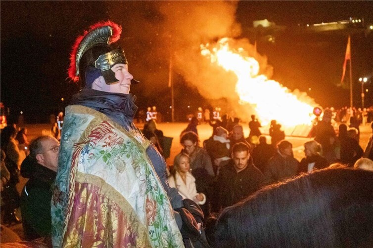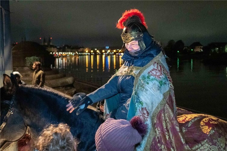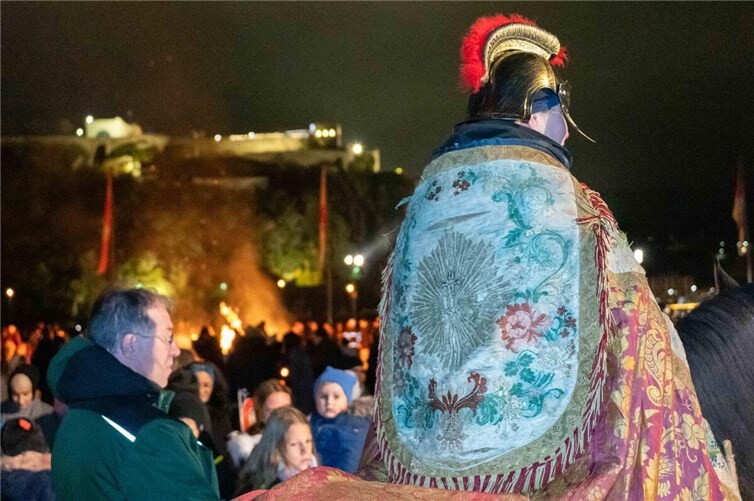 Koblenz. Ein Abend im November mit viel Tradition für die Kinder und Familien. Erst wenn es draußen kühl und dunkel wurde und einige erste Pechfackeln angezündet waren, kam die richtige Stimmung für den Abend mit Sankt Martin auf. In der Liebfrauenkirche begrüßte zuerst Dekan Thomas Darscheid die Kirchengemeinde um einen gemeinsamen Wortgottesdienst zu feiern. Neben Gebeten, Fürbitten und Liedern besprach er mit den Kindern die Geschichte und den Sinn des Gedenktages an den römischen Reiter der um das Jahr 331 im kalten Winter einem armen, unbekleideten Bettler half, indem er seinen Mantel mit ihm teilte. Nach dem Gottesdienst haben draußen mittlerweile die vielen Helfer, Polizei, Sanitätsdienst, Musikverein und fast 50 ehrenamtliche Ordner dafür gesorgt, dass gleich der Umzug starten kann. Ohne die vielen Helfer, Spender und Sponsoren wäre dieser feierliche Abend nicht möglich! Als Martin (alias Alexandra Susenburger) und ihr Pferd Catujano am Eck zwischen Münzplatz und Liebfrauenkirche eintrafen, waren schon sehr viele Kinder, Familien und Freunde dort und der Martinszug konnte losgehen. Schon die kleinsten der Kleinen noch im Kinderwagen hatten fast alle bereits eine Laterne in der Hand. Die Überraschung und Spannung waren groß, als sie zum ersten Mal in der Dunkelheit einen Reiter auf seinem Pferd sehen konnten. Aber das freundliche Lächeln von „St.Martina-Alexandra“ sorgte schnell für gute Stimmung bei allen. Mit den altbekannten Liedern: „Ich geh mit meiner Laterne“, „Sankt Martin ritt durch Schnee und Wind“ und „Laterne, Laterne“ ging es durch die Mehl- und Gemüsegasse weiter quer durch die Altstadt runter zum Rheinufer und dann bis zum Deutschen Eck. Sehr vorwinterlich frisch war es schon und alle freuten sich auf das wärmende, große Feuer vor dem Kaiser-Wilhelm-Denkmal. Das Eck war schnell gefüllt und die Feuerwehr hatte bereits das Feuer angezündet. Hier sorgten die Frauen und Männer der Koblenzer Feuerwache für die Sicherheit. Viele selbstgebastelte Laternen, aber auch einige richtig traditionell geschnitzte „Knolleköpp“ aus Runkelrüben hatten die Kinder mit dabei. Sankt Martin mit Pferd stellte sich in sicherer Entfernung vom mittlerweile richtig heißen Feuer hin und die beiden ließen die Kinder geduldig das Pferd streicheln und Erinnerungsfotos machen. Dieser wunderschöne, immer etwas geheimnisvolle Abend wurde beschert von der Koblenzer Schängelkultur und Bürgerinitiative „Unsere Altstadt“, der Weissergasser Kirmesgesellschaft, der Katholischen Kirchengemeinde Koblenz Dreifaltigkeit und der vielen Helferinnen und Helfer, die am Feuer dann auch dafür sorgten, dass jedes Kind einen frisch gebackenen Weckmann bekommt und Kinderpunsch, Glühwein und heiße Würstchen bereitstehen. Der Zug durch die Altstadt, das gemeinsame Singen und das Feuer am Deutschen Eck ist immer ein großes Stück Tradition und wird auch in allen Stadtteilen immer wieder fortgesetzt. „Ich geh mit meiner Laterne und meine Laterne mit mir. Dort oben leuchten die Sterne, hier unten leuchten wir“!
