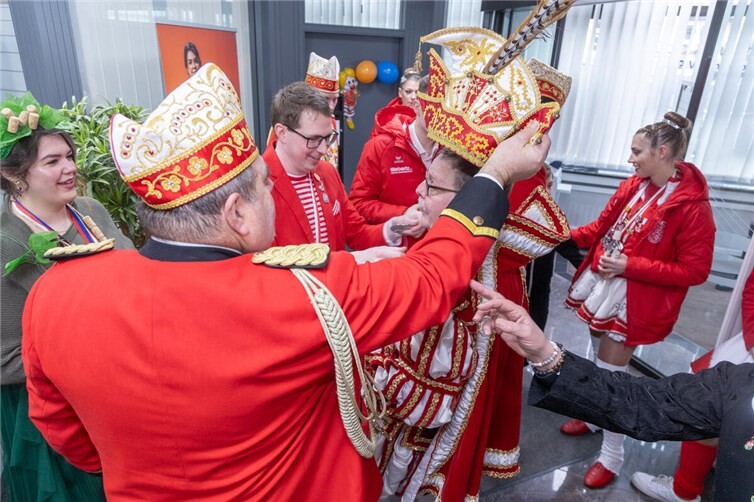 Bereits um 7:30 Uhr begann das närrische Programm für die GEK an Weiberfastnacht. Fotos: privat