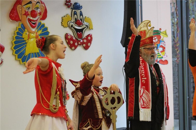 Bürgermeister Achim Juchem hatte keine Chance: noch am Vormittag wurde das Grafschafter Rathaus von einer bunten Möhnenschar erobert, wie unsere Bildergalerie beweist!