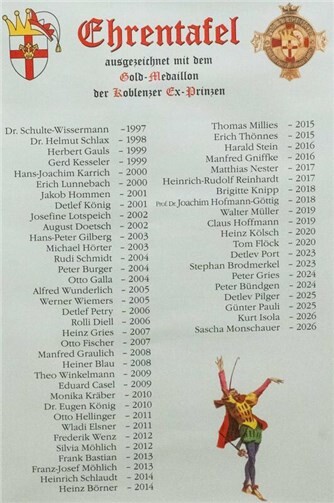 Fotogalerie: Verleihung des Goldmedaillons der Koblenzer Ex-Prinzen 2026