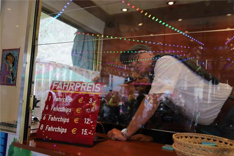 Ortsbürgermeister Detlef Leersch verteilt Freifahrtchips.