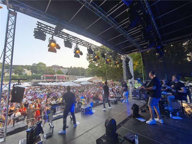 Bad Neuenahr-Ahrweiler. Dass kölsche Musik nicht nur zur Fastelovendszeit sehr viele Fans hat, ist längst kein Geheimnis mehr. Events wie „Jeck em Sunnesching“ haben sich längst als Publikumsmagneten etabliert. Auch in der Kreisstadt huldigt man alljährlich mitten im Sommer den kölschen Tön. „Typisch Kölsch“ heißt das vom Festausschuss Karneval Bad Neuenahr-Ahrweiler erstmals 2023 veranstaltete Ein-Tages-Festival, das auch am vergangenen Samstag wieder zahlreiche Musikfreunde in den Bad Neuenahrer Kurpark lockte. Und die schätzen vor allem die lockere, stimmungsvolle Atmosphäre: ob kostümiert oder nicht lässt sich bei einem kühlen Getränk in schöner Location der Live-Sound genießen. Für den perfekten Auftakt sorgten diesmal „Veedel vor 12“, die auch von verschiedenen Karnevalssitzungen in der Kreisstadt schon bestens bekannt und beliebt sind, gefolgt von „F!asko“, „Eldorado“ und „Ben Randerath“, auf die dies auch zutrifft. Nach der Band „Miljö“ war es der Kölner Rapper „Mo Torres“, der nicht nur die Bühne rockte, sondern auch zahlreiche Fans mitgebracht hatte. Als würdiger Headliner sorgten schließlich die „Klüngelköpp“ mit Hits wie „Stääne“ und „Jedäuf met 4711“ für den mehr als passenden Abschluss. DU