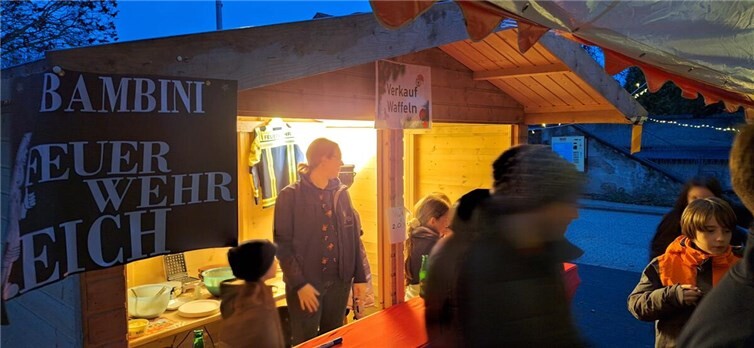 Die Feuerwehr hatte den Platz vor dem Gerätehaus wieder festlich geschmückt und lud für ein paar gemeinschaftliche Stunden in der Vorweihnachtszeit ein. Neben Glühwein und Punsch konnte man sich mit leckeren Würstchen den Hunger stillen. Die Bamibini-Feuerwehr sorgte darüber hinaus mit Waffeln für die Abrundung des kulinarischen Angebots. An einigen Ständen konnte auch noch das ein oder andere Weihnachtspräsent gefunden werden. So fanden sich im Laufe des Nachmittags zahlreiche Gäste ein, die bis in die tiefen Abendstunden verweilten. Ein schöner Advents-Sonntag bei der Eicher Feuerwehr fand so erst in den späten Abendstunden sein Ende.