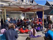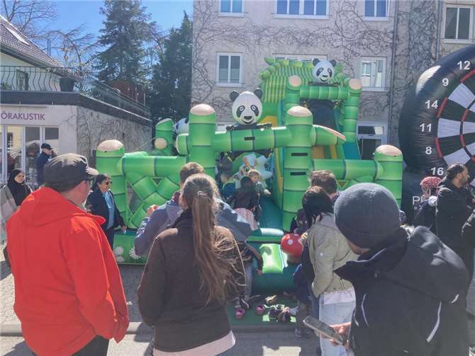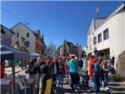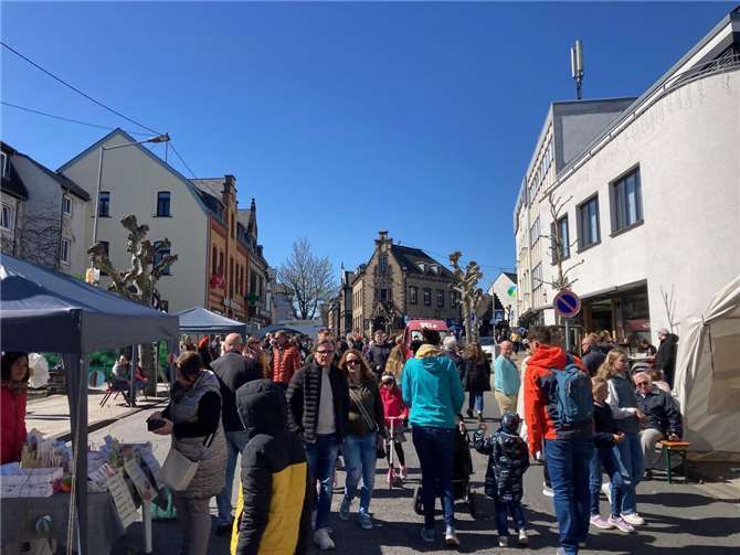Parallel dazu erwartete die Marktfreunde frühlingshafte Überraschungen von Einzelhändlern und Dienstleistern, zu denen auch die kostenlose Gaumenfreude „Eier mit grüner Soße“ zählte. Zu diesen gesellten sich weitere Leckerbissen, die sich an diversen Marktbuden entweder als süße oder deftige Köstlichkeit offenbarten. Auch für die jungen und jüngsten Besucher des Events hatten die Offiziellen bei einem kurzweiligen Rahmenprogramm einiges zu bieten. Während Menni Mühlenstein Garant für Gaudi bei den Kleinsten war, tobten sich die etwas Älteren lieber auf der Hüpfburg aus oder nahmen am 9. Bobby-Car-Rennen, organisiert von der SG Eintracht Mendig-Bell, teil. Weitere Spiel- und Spaßangebote lockten ebenfalls zahlreiche Interessenten, die sich überdies gerne an einem Gewinnspiel mit attraktiven Preisen beteiligten. Im Dichterviertel erfreuten sich die Veranstaltungsbesucher an einem großen Hofflohmarkt mit Flohmarktwiese. TE