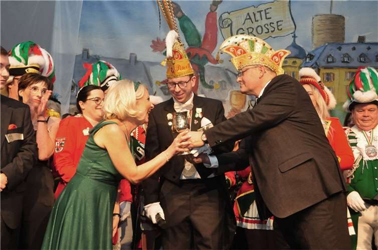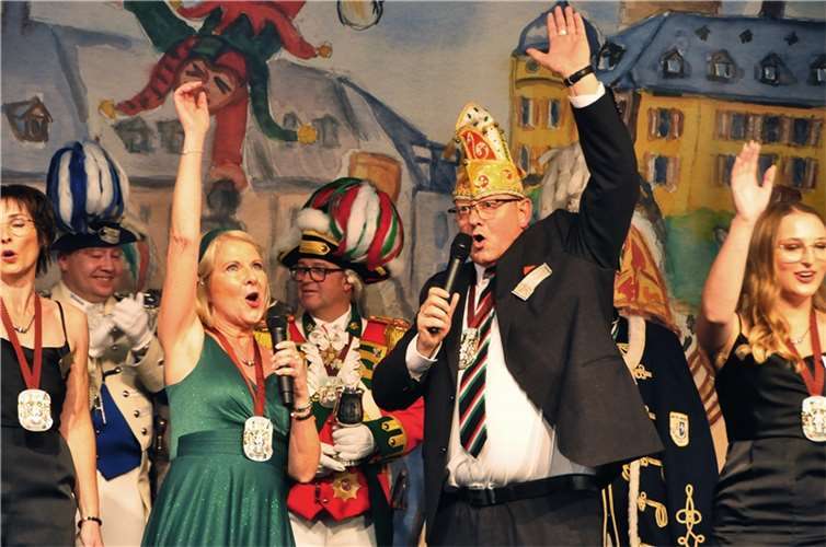 Mayen. Tusch un draimol Maye Mayoh - dann wenn „de Faasenaacht“ in der Eifelstadt beginnt. Und so war es auch am vergangenen Samstagabend in der karnevalistisch festlich dekorierten Halle 129, die zur Vorstellung der neuen Mayener Tollitäten mit vielen feierfreudigen, aus allen Himmelsrichtungen angereisten eisenharten Fastnachtern, darunter auch Mayens Stadtchef Dirk Meid, gefüllt war. Da waren sie alle wieder in Fahrt. Pünktlich um 19.11 Uhr ging das närrische Spektakulum los. Aufmarsch der „Alten Großen Mayener Karnevalsgesellschaft“ mit Präsident Uli Walsdorf und seinem rotgefrackten Vorstand. „Heut hann ech nur en kleinere Abordnung dobai, all annere sain em Einsatz“ scherzte Walsdorf. „Mir sain widda doh, dee Mayna Faasenaacht würd niemols unna john“ versprach der Spitzenmann der AGMK, in seinem Opening, gab in gekonnter humoristischer Art, locker vom Hocker Termine der „Faasenaacht“ wie die Proklamation am 6.1.2024., die Prinzenkrönung am 13.1. 2024 oder die Herrensitzung am 4.2.2024, bekannt, und wies auch gleichzeitig auf die Auflösung eines der am besten gehüteten Mayener Geheimnisse hin: „Wer wird wohl das neue Regentenpaar, der Regent, oder gar die Regentin in der Eifelstadt. Und spätestens jetzt hatte der „Bazillus Karnevalitis“ mit einem Hauch des Flairs der „Mayna Faasenaacht“ die Anwesenden in seinen Bann gezogen. Dann, den musikalisch von den „Grün Weißen“ intonierten Einmarsch des Ex-Prinzen „Peter IV.“ mit Hofstaat und Gefolge, leider ohne den erkrankten Mundschenken, die in der vergangenen Session unter des Prinzen Motto: „Ob fröh oder spät, ob Daach oda Naacht – Mir all faieren oos Faasenaacht“ Karnevals-Flair auf die Bühne zauberten. „Es war für uns ein Traum, eine Zeit mit Euch allen, die wir niemals missen möchten“, rief Exprinz „Peter IV.“ inmitten seiner Mannschaft, den begeisterten Närrinnen und Narren zu. Emotional beschworen sie alle, die im Mayener Karneval Verantwortung tragen oder aktiv mitarbeiten, „gemeinsam“ vieles für die gute alte Tradition, Mayna Faasenaacht“, in der geliebten Heimatstadt zu bewirken. Nach dem vom Fanfarencorps „Grün weiß“ musikalisch begleiteten Abzug aller Garden und Korporationen von der Bühne, war für den Präsidenten, Uli Walsdorf, der Zeitpunkt gekommen, das „Geheimnis“ zu lüften: „Es ist so weit. Ich bitte Sie, alle sich von ihren Plätzen zu erheben. Empfangen wir nun unsere neue Regenten“. Unter frenetischem Beifall und „Ach wär ich nur ein einzig mal“, zog das von allen erwarteten Mayener Prinzenpaar in der Session 2023/24, Prinz „Peter V.“ und „Prinzessin Martina I.“ mit Hofstaat zur Bühne. Eines sei vorausgeschickt: Da kommt was Vielversprechendes in puncto „Echte Faasenaacht“, auf die Mayener Närrinnen und Narren zu. Zwei in der Eifelstadt sehr bekannte Familien mit viel Herzblut für den Frohsinn der 5. Jahreszeit. Die „Ospels“ und die „Kalischans“. Eine verschworene Mannschaft mit dem richtig treffenden Motto: „Ob Jung, ob Alt, Ob Arm, Ob Reich – En da Faasenaacht sain ma alle Gleich“. Die hochwohlgeborenen Tollitäten Prinz Peter der V. mit seiner liebreizenden Ehefrau Prinzessin Martina I. und ihrem Sohn Lukas, der als quirliger Hofnarr auftritt, das sind die Ospels. Und die Kalischans sind mit den beiden Pagen Jenny und Lilly, sowie dem, den Becher der Freude kredenzenden Mundschenk Thomas (Kali) mit von der närrischen Partie im Hofstaat. Prinz „Peter V“. der 58-jährige Versicherungskaufmann, Urmayener und Erzkarnevalist wurde schon als „Panz“ von der Freude am echt Mayener Karneval angesteckt. Von Jugend an hat er die Freuden der Narretei mitbekommen. Persönliches Highlight war wohl die Rolle des Hofnarren im Hofstaat von Prinz „Uli“. „Diese Begeisterung habe ich an mein Frau Martina und unseren Sohn Lukas, der als Hofnarr fungiert, weiter gereicht“ so Tollität. Klar, Lukas, einst im Jahre 2004 der jüngste Teilnehmer beim Kinderzug, hat nämlich von Kind an die Freuden des Karnevals mit bekommen. In Mayen ist er sehr aktiv in den Reihen der Feuerwehr und in der Jungen Alten Großen“, Prinz Peter´s bessere Hälfte, die 52-jährige, aus dem Sauerland stammende Prinzessin „Martina I. ist seit ihrer Hochzeit, ebenfalls fest in den Mayener Karneval eingebunden. Denn der Karneval war ihr nie fremd. Ob nun in der FW Showtanzgruppe, oder bei den Feuerwehrmöhnen. „Wir besuchten, zusammen mit unseren Freunden die Sitzungen, Bälle oder Umzüge, so fand ich zum Beispiel den Panik Ball in Ettringen „mega“, Na ja, das erste mal „Mayoh“ zu rufen, war etwas befremdlich, aber nach ein paar nett gemeinten „Kurzen“ wurde es immer besser“, verriet sie BLICK aktuell. Das Regentenpaar ist sehr aktiv und nimmt u.a. lückenlos in der Fußgruppe der Freiwilligen Feuerwehr Mayen im Kinder- und Rosenmontagszug teil. Die „Ospels“ sind jedenfalls allesamt stolz auf ihren Freundeskreis, aus dem Geschlecht der „Kalischan´s“ im Hofstaat. Da ist der 56-jährige Thomas Kalischan, liebevoll „Kali“ genannt, der als Mundschenk für den vollen Becher der Freude sorgt. Seit Kindesbeinen ein eingefleischter Fastnachter durch und durch, Organisationstalent und Superkumpel des Prinzen. Seine Verbundenheit zum Karneval schwappte auch auf Ehefrau „Jenny“ und Tochter „Lilly“, die „ihr Prinzenpaar“ als reizende „Pagen“ begleiten, über. Jetzt nun wurde „Kali´s“ lang gehegter Wunsch, Mundschenk seiner Freunde zu sein, Wirklichkeit. Ihre Devise: „Es ist unser aller gemeinsamer Wunsch und unsere Freude das Brauchtum der Mayener Fastnacht leben und pflegen zu können und dabei besonders die jungen Menschen zu begeistern“. Jedenfalls war es ein Abend der Lebensfreude für alle, die dabei waren. Beste Stimmung brachte die Band „De Schlingele“, die Regimentsgarde des 81. Husarenregimentes Blau weiß Hausen sowie die Showtanzgruppe „Moonlight Dancers“ au
