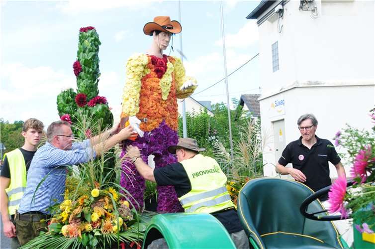 Und lange zitterten die Erpeler und ihre Gäste, ob es dieses Mal überhaupt ein Blumenkorso geben konnte. Neue Sicherheitsbestimmungen verlangten Korso-Fahrzeuge mit vollständigen Papieren, einer Straßenzulassung und aktueller TÜV-Plakette. Bisher wurden überwiegend ehemals landwirtschaftlich genutzte Fahrgestelle verwendet, die zwar alles hatten, was man für den Erpeler Blumenkorso brauchte, aber keine Zulassung, keinen TÜV und auch keine Papiere für die Behörden. Der Brauchtumsverein bat die Bürger um Unterstützung, denn die Lösung lag in einem Anhängerkonzept. D.h., Zugmaschinen sollten von Bürgern und Firmen geliehene Anhänger ziehen und auf diesen sollten dann die blumigen Themen aufgebaut werden.