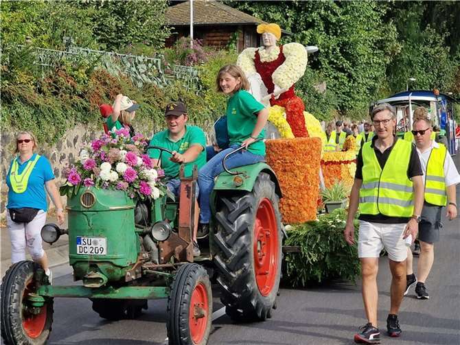 Erpel. Seit über 100 Jahren feiert Erpel sein Weinfest. Denn schon 1901 wurde der Brauchtumsverein „Freunde des Erpeler Weinfestes“ erstmals erwähnt. Auch dieses Jahr wurde vier Tage gefeiert, gesungen und getrunken. Lachende Gesichter und volle Gassen: In der alten Herrlichkeit Erpel war vom 15. - 18. September ordentlich etwas los. Festakt zur Eröffnung, Live Musik, geführte Ortsbesichtigung, Erntedank- und Weinfestmesse in der St. Severinus Pfarrkirche standen unter anderem auf dem Festprogramm-Kalender des Weinfestes. Und natürlich, wie jedes Jahr, Höhepunkt und Anziehungspunkt für Gäste auch aus ferneren Gefilden: Der Blumenkorso durch die Stadt und entlang des Rheins auf der B 42.
