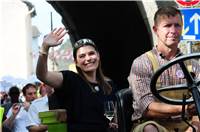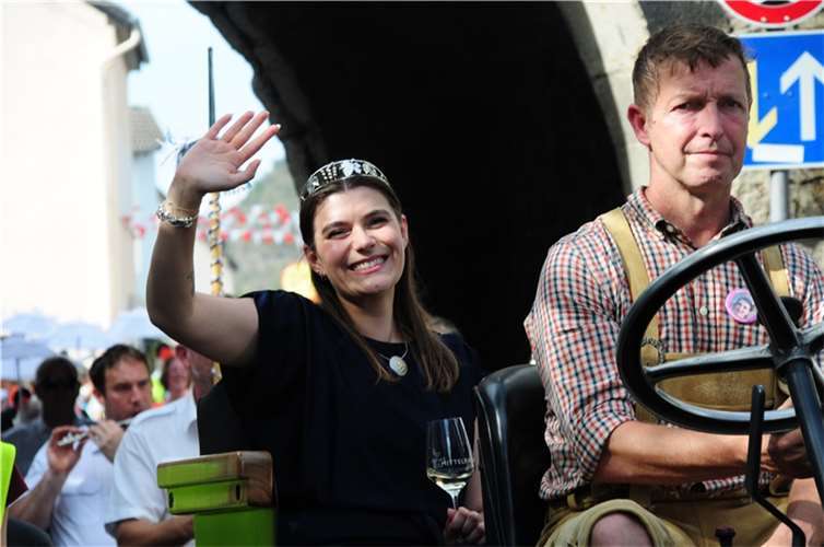 Weinkönigen Lara I. (Dommermuth) prostete den Besuchern beim Weinfest zu.