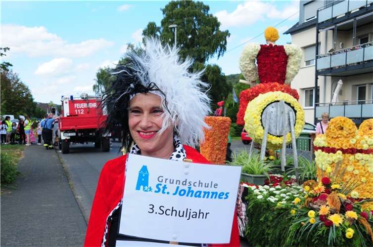 „Das Comic-Motto war ideal für die Kinder“, sagte der Erpeler Grundschulleiter Jens Heinroth „sie kennen die Figuren und können sich damit identifizieren“. Und so stellte jede Klassenstufe der Grundschule eine Comicfigur als Fußgruppe mit großer Begeisterung dar. Der Brauchtumsverein hat mit rund 75 freiwilligen Helfern die Blüten zu den gezeigten Motiven gesteckt und ebenfalls 70 freiwillige sogenannte Wagenengel sorgten in ihren gelben Westen vor, neben und hinter den Wagen laufend dafür, dass nichts und niemand vor die Räder geriet.