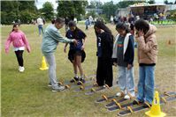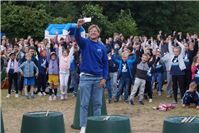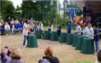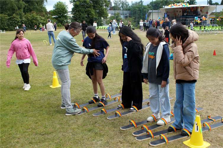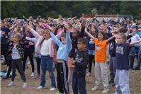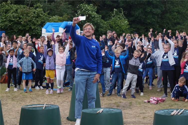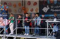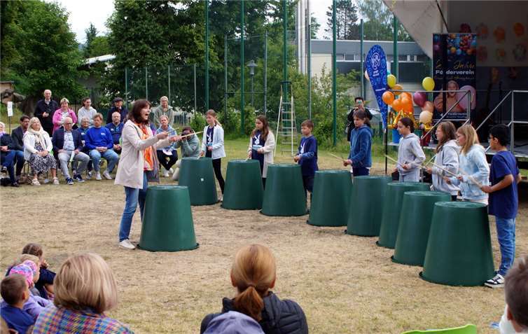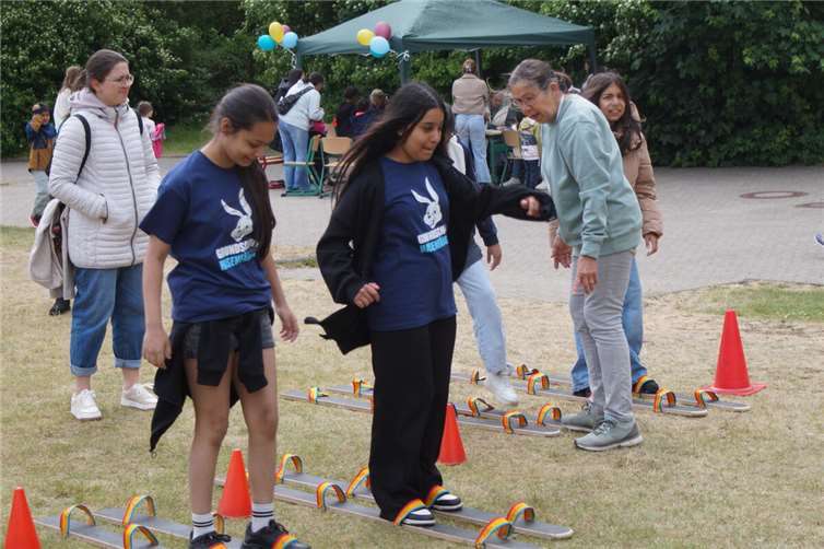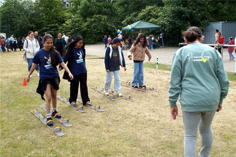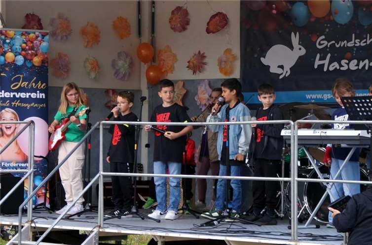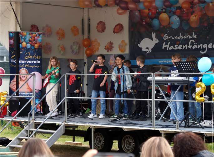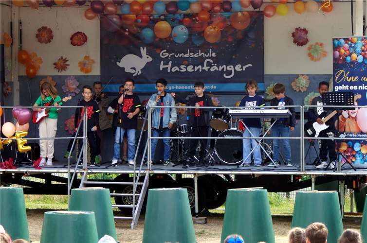 Die heimlichen Stars des Festtages waren nicht die Festredner, sondern die Kinder selbst: Sie hatten sich bestens auf den Tag vorbereitet und präsentierten auf der großen Bühne ihr Können. Publikumsliebling war die Gruppe „Ohrkiller“, die mit deutschsprachigen Liedern den Geschmack des Publikums traf. Es war erstaunlich, welche jungen Rap-Talente auf der Bühne mitwirkten. Eine gelungene Performance zeigte auch eine Trommlergruppe, die Regenfässer zu Musikinstrumenten umfunktioniert hatten. Und dass die Lehrerinnen und Lehrer bei der Schulband selbst mitwirkten, verdeutlichte den gelebten Gemeinschaftssinn in der Schule. Besonders kräftig sang das Publikum bei der Schul-Hymne mit („Hasenfänger sind wir heute, große und auch kleine Leute“). Gleiches galt auch für das Lied „Es lebe der Sport“ von Rainhard Fendrich, welches das Motto der Kick-Off-Veranstaltung bestens zusammenfasste. Im Anschluss an den offiziellen Teil konnten die Kinder an den Stationen ausgiebig verschiedene Sportarten ausprobieren.