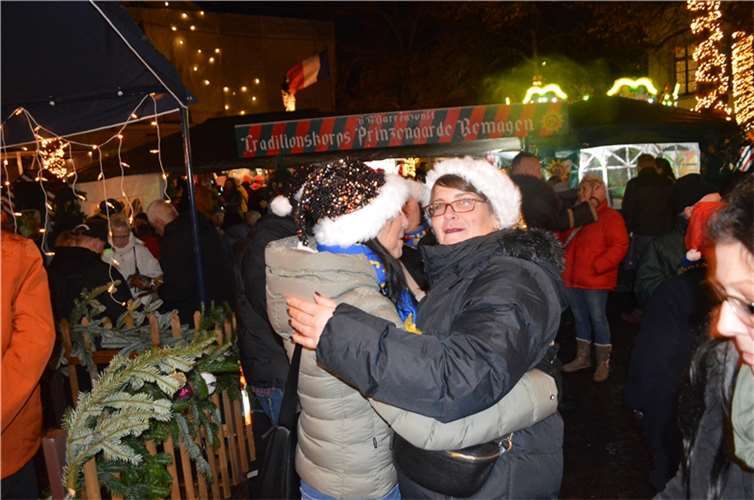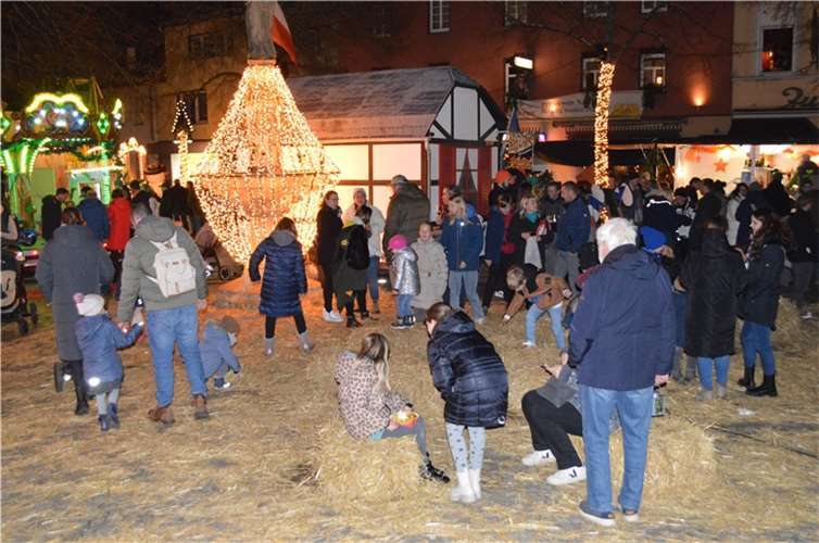 Remagen. Über großen Zuspruch konnten sich die Stadt Remagen um Marktmeister Günter Balas und die Werbegemeinschaft „Remagen mag ich“ um Vorsitzende Kerstin Sievert am Wochenende beim traditionellen Nikolausmarkt freuen. War der Samstag aufgrund des Regens am frühen Abend noch etwas verhaltener besucht, so herrschte am Sonntag ab Mittag sehr guter Betrieb im Bereich des Nikolausmarktes. Besonders beliebt war der Genussmarkt auf dem Marktplatz. Hier gab es Köstlichkeiten in allen Variationen und mit der tollen Beleuchtung und den rund 50 Strohballen lud der Genussmarkt zum Treffen, Genießen und Plaudern in großer Runde ein. Für die Kinder gab es ein kleines historisches Karussell und ein Mini-Riesenrad. Und während sich die Kleinen vergnügten und vom Nikolaus beschenkt wurden, genossen die begleitenden Erwachsenen das Vergnügen und den Plausch mit Familie, Freunden, Bekannten und Nachbarn. Sehr gut kam auch an, dass die musizierenden und singenden Kinder zunächst auf der Rathaustreppe ihr Können zeigten, moderiert und vorgestellt von Sebastian Schmickler. Für das leibliche Wohl sorgten die „Fritten-Queen“ mit hochwertigen Snacks, das Weingut Peter Kriechel mit edlen Tropfen, die „Flammkuchenbaracke“, der „Gin-Reporter“ und die „Naschbude“ mit süßen Leckereien. Besonders die selbstgebackenen Reibekuchen der Prinzengarde nach Omas Rezept waren der Renner. Unermüdlich wurde geschält, gerieben, gewürzt, gerührt und gebacken. Der Andrang war so groß, dass die Mädels und Jungs der Prinzengarde alle Hände voll zu tun hatten, um die vielen Menschen mit leckeren Reibekuchen zu günstigen Preisen zu versorgen. Rund um den Marktplatz sorgten weitere Vereine und die Bauernschenken für edle Heißgetränke. So war der Bereich des Marktplatzes durchgehend gut bis sehr gut gefüllt. Musik gab es an vielen Stellen im Bereich des Nikolausmarktes. Ob große oder kleine Musiker, alle zusammen brachten mit ihren Klängen weihnachtliche Stimmung auf den Remagener Nikolausmarkt.