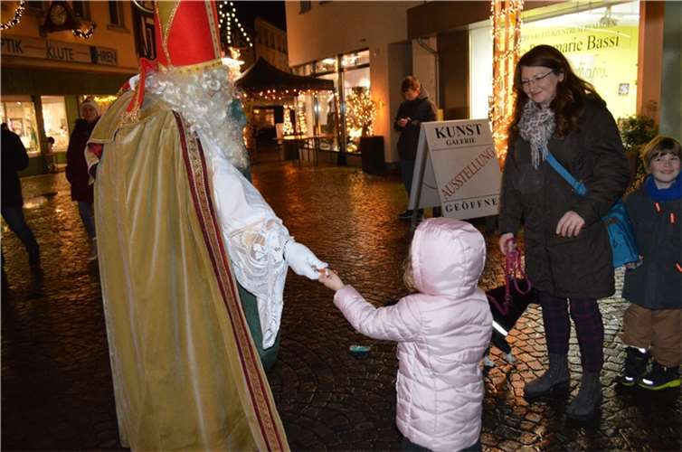 Und für die Kleinen durfte natürlich auch der Nikolaus, alias Jens Utsch, nicht fehlen, der an beiden Tagen über den Markt schlenderte und die Kinder beschenkte. Und wer Weihnachtsgeschichten hören wollte, konnte dies in der Galerie K2 tun, wo die Märchentante Bruni Hermes den Kindern vorlas.