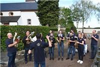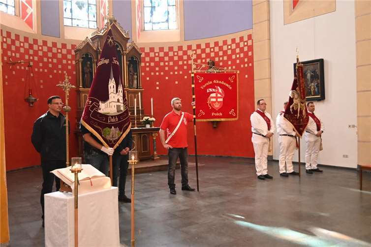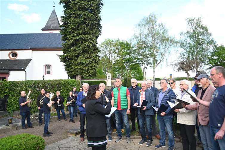 Zu Beginn der Feierlichkeiten stand die Gefallenenehrung an, natürlich im Dunstkreis der katholischen Friedhofskapelle St. Georg, eine frühromanische Pfeilerbasilika und eine der ältesten Kirchen der Eifel, deren Entstehungszeit in das späte elfte oder frühe zwölfte Jahrhundert datiert wird. Der Polcher Männerchor unter der Leitung von Eugenia Buling trug mit „Herr, deine Güte reicht so weit“ und „Frieden sei dieser Welt beschieden“ zwei einfühlsame Lieder vor. Zwei weitere Stücke hatte der Musikverein Polch im Repertoire.