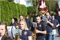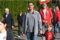 Angeführt von der Freiwilligen Feuerwehr führte der Festumzug mit vielen beteiligten Vereinen wie auch in der jüngeren Vergangenheit vom Friedhof zur Pfarrkirche St. Stephanus, wo Pfarrer Andreas Kern eine einstündige Kirmesmesse vorbereitet hatte. Das geschmückte Osterkreuz durfte im Altarbereich ebenso wenig fehlen wie ein Bild des vor wenigen Tagen verstorbenen Papstes Franziskus.