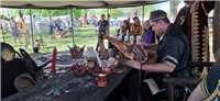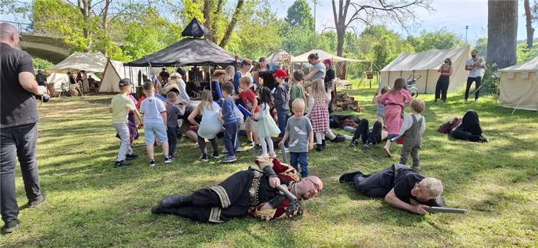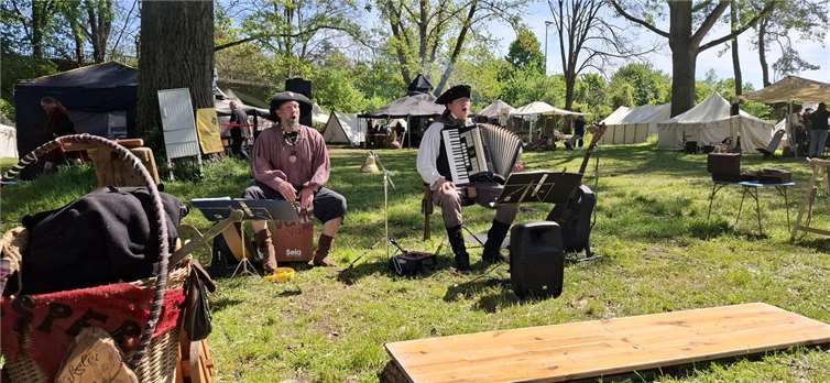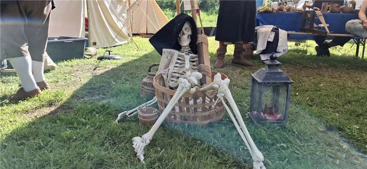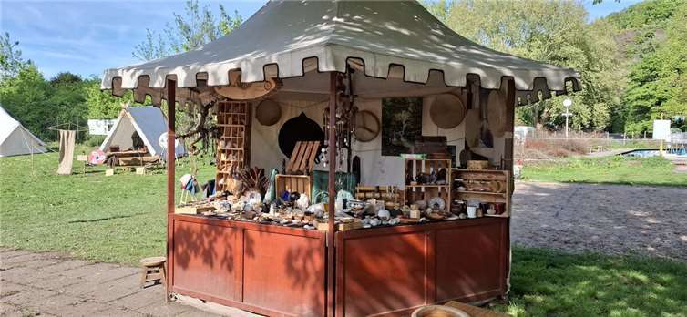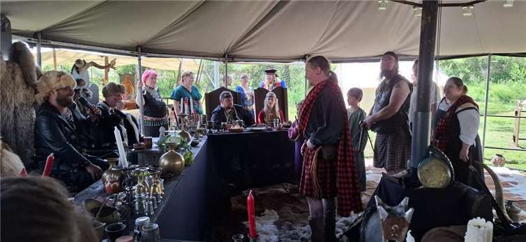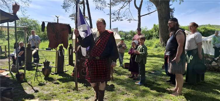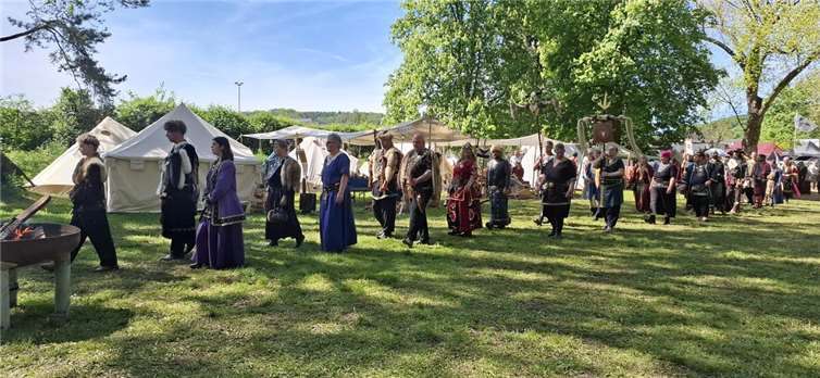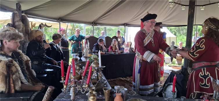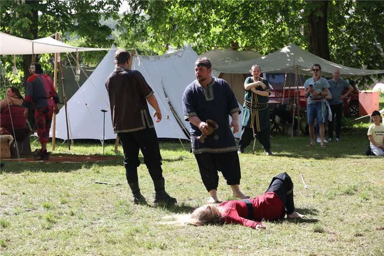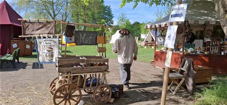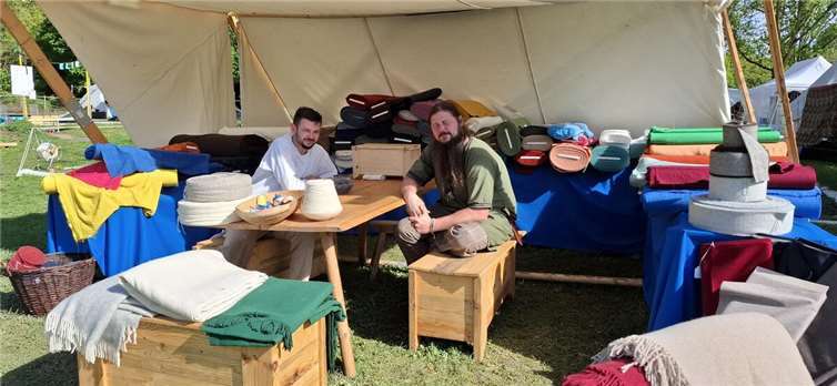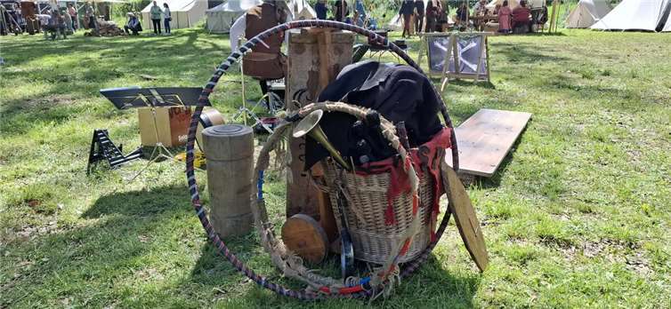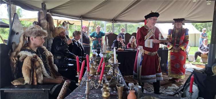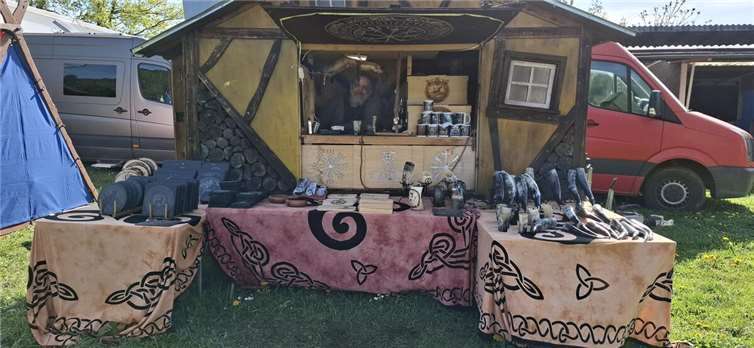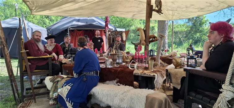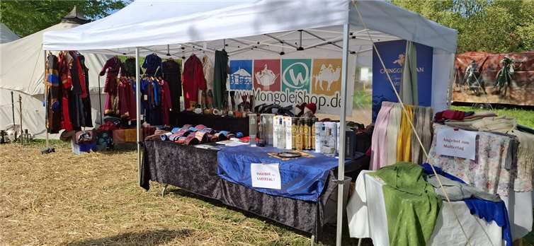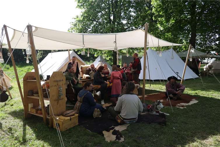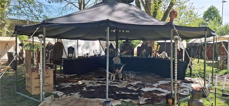 Felle, Häute, Holztafeln, Waffen, Kerzen, goldfarbene Gefäße, das Betreten des Lagers entführte die Gäste in eine andere Welt und in eine andere Zeit.
