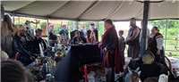 Das 12. Hunnenlager in Unkel war, unter dem Regiment von Königin Greka, die nicht nur alles im Griff hat, sondern auch vor Energie sprüht, in seinen dritten und letzten Tag gestartet. Vom 25. - 27. April verwandelte die Unkeler Hunnenhorde die Wiese im Park in ein typisches Lagert des Reitervolkes aus Zentralasien. Bei der Lagergestaltung wurde Wert auf die höchstmögliche Authentizität gelegt. Felle, Häute, Holztafeln, Waffen, Kerzen, goldfarbene Gefäße, das Betreten des Lagers entführte die Gäste in eine andere Welt und in eine andere Zeit. Für die Teilnehmenden herrschte im Lager sogar Handyverbot. Manch einer verzichtete auf das Tragen einer Uhr. In der Mitte des Lagers brannte das ewige Feuer, das am vergangenen Freitag feierlich entzündet wurde. „Das Feuer muss immer brennen und wird mit gesegnetem Holz genährt“, wusste Tobias zu berichten, der inzwischen seinen Hunnennamen Krieger Valamir trägt. „Das Feuer muss die ganze Lagerzeit über brennen. Erlischt es, muss abgebaut werden, dann ist das Lager vorbei.“