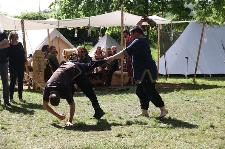 Unkel. Die Sonne strahlte am vergangenen Sonntag von einem fast wolkenlosen blauen Himmel, während mittelalterliche oder maritime Klänge durch das Hunnenlager im Bürgerpark schallten. Kaum zu glauben, versank das Lager doch während des Aufbaus am Freitag noch in Schlamm und Regenmassen. Überall herrschte geschäftiges Treiben. Der Getränkestand hatte gut zu tun, der Gaukler verblüffte das Publikum mit artistischen Darbietungen mit dem Diabolo, als Jongleure oder auf einer Wippe. Neben den Jurten und Zelten, in denen die Teilnehmerinnen und Teilnehmer während des Wochenendes schliefen, gab es einige Verkaufsstände die Waren wie Stoffe, mongolische Kleidung, Schmuck und anderes Kunsthandwerk feilboten.