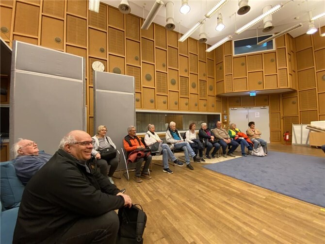 Kolping-Mitglieder besuchten ein Hörspielstudio und sahen, wie Geräusche gemacht werden beim „Kino für die Ohren“. Foto: Thomas Schneider