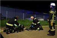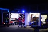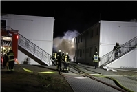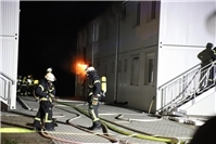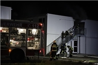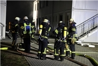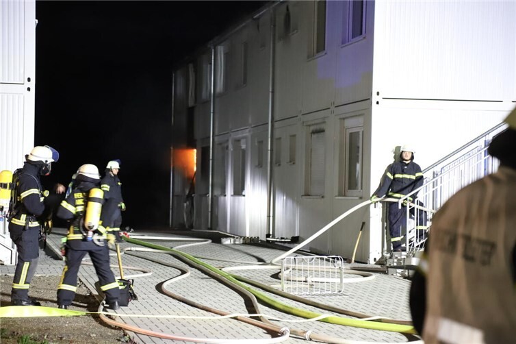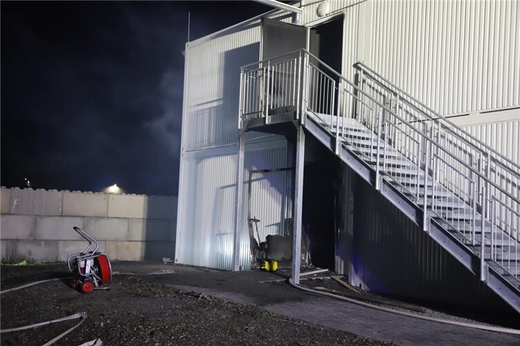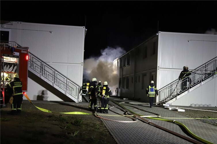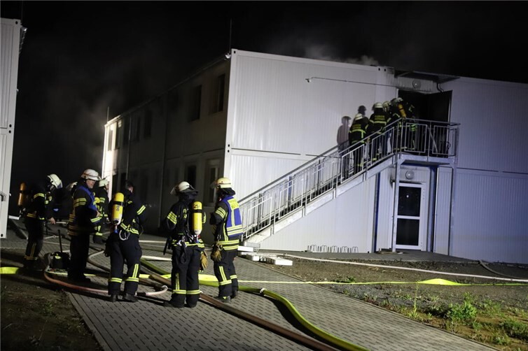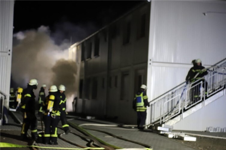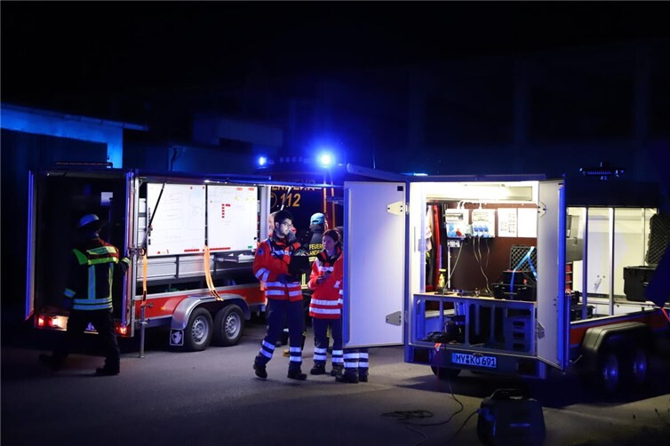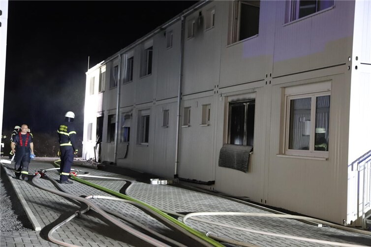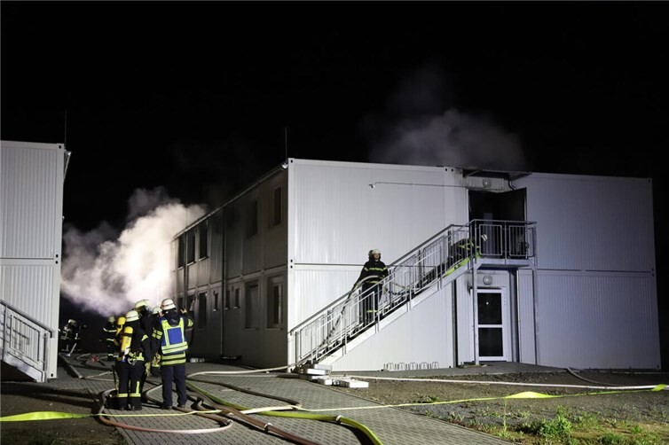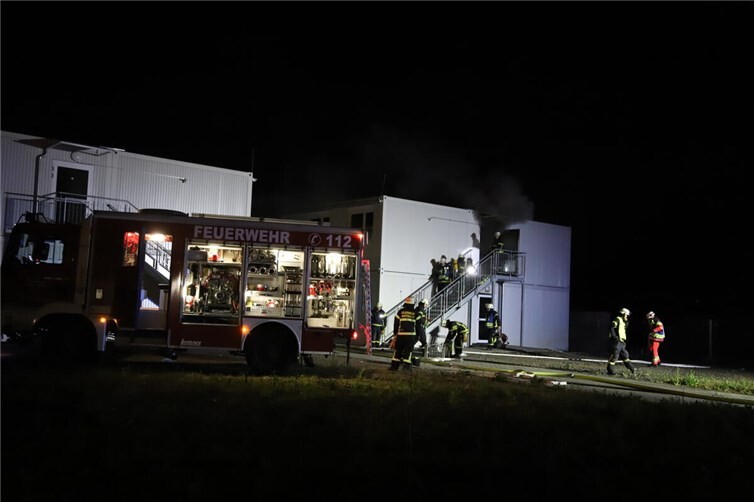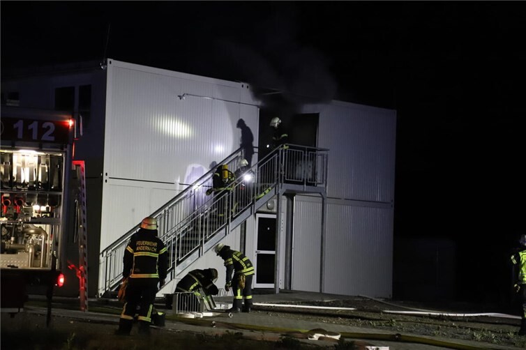 Andernach. In der Nacht vom 21.04.2026 ertönten um kurz nach Mitternacht die Martinshörner in Andernach. Durch die zuerst am Brandort gewesene Polizei wurde ein großflächiges Feuer in mehreren Wohncontainern zwischen der Industrie- und der Hans Julius Ahlmann Straße gemeldet. Beim Eintreffen der Feuerwehren schlugen die Flammen bis über das Dach der zweigeschoßigen Wohncontaineranlage. Da nicht klar war, ob sich in den Containern noch Personen befanden, wurde Sirenenalarm ausgelöst und rund 60 Rettungskräfte (Feuerwehr, DRK, Polizei) zusammengezogen, darunter auch der Atemschutzzug aus Weißenthurm. Die Wohneinheiten waren voll möbliert, wodurch sich der Brand schnell ausbreiten konnte. Unter Atemschutz wurde gegen das Feuer vorgegangen, um das Übergreifen auf benachbarte Container zu verhindern. Zeitgleich gingen Atemschutztrupps in das Gebäude, um nach Personen zu suchen. Gegen 01.30 Uhr wurde Entwarnung gegeben, Personen konnten in den Ausgenbrannten Containern nicht gefunden werden. Mittels Drohne mit Wärmebildkamera wurde das Gebäude nach Brandnestern abgesucht mit den Nachlöscharbeiten begonnen und das Gebäude Rauchfrei gemacht. Die Kripo hat die Ermittlungen zur Brandursache übernommen. Diese steht zurzeit noch nicht fest. WAM