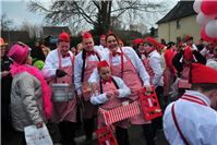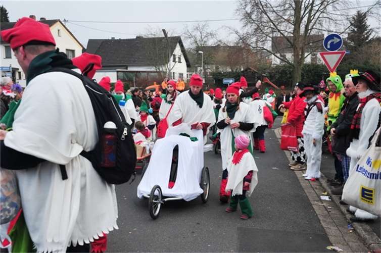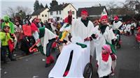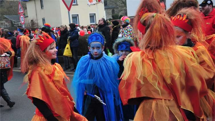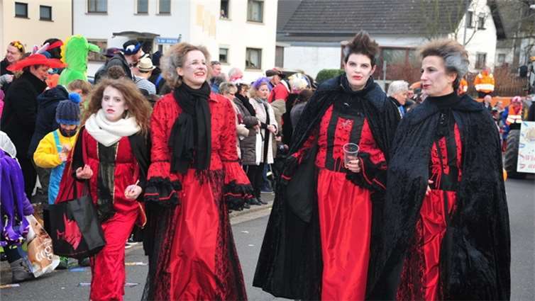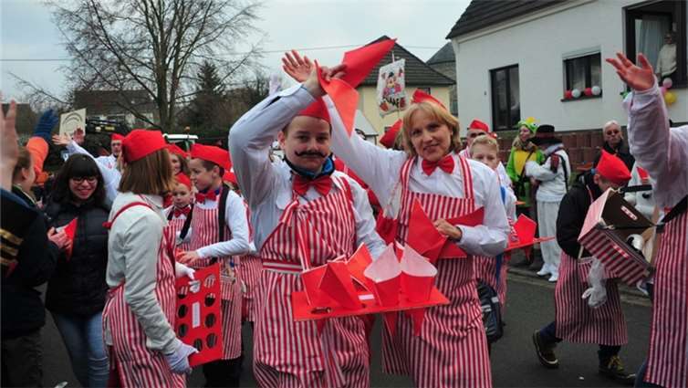 Westum. Ðie Sonne kam gerade rechtzeitig zum Rosenmontagsspektakel mit knapp 10.000 Besuchern. 45 Gruppen und Wagen mit weit über 900 Teilnehmern hatten Zugleiter Bruno Bockshecker und die Rot-Weiße KG, die in diesem Jahr ihr 80- jähriges Bestehen feierte, auf die Westumer Straßen geschickt. In fast jeder Garage oder Einfahrt gab es ein kleines Fest. Denn im jecken Murreland geht der Zuch nur alle fünf Jahre und das ist prima, denn dann sind fast alle Westumer dabei. Große Prunkwagen, viel Musik, grandios kostümierte Fußgruppen von den Pharaonen über die Clowns bis hin zu den Zwergen, den jecken Massen wurde alles geboten, was einen richtig guten Rosenmontagszug ausmacht. Einem einzigen Trumpfzug absolvierte das erste Westumer Dreigestirn. Prinz Michael I. (Giehl) Jungfrau Marcella I. (Marcel Seul) und Bauer Schulle I. (Jörg Schneider) genossen dies in vollen Zügen und sorgten für heftigen Kamellenregen. Stammgast auf dem Wagen der KG war Landrat Jürgen Pföhler, der in Westum schon längst zur „Edelmöhre auf Lebenszeit“ ernannt ist. Farbenpracht und Ideenreichtum pur waren angesagt. Vor und auch nach dem Zuch war der ganze Ort eine einzige Fetenmeile. - BL - Fotos. RÜ