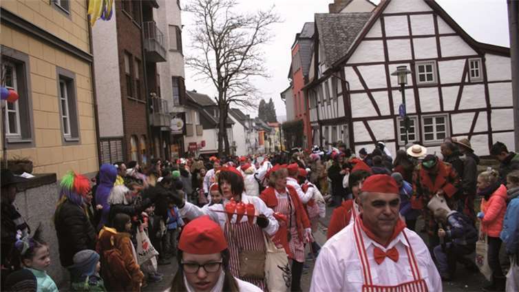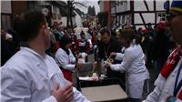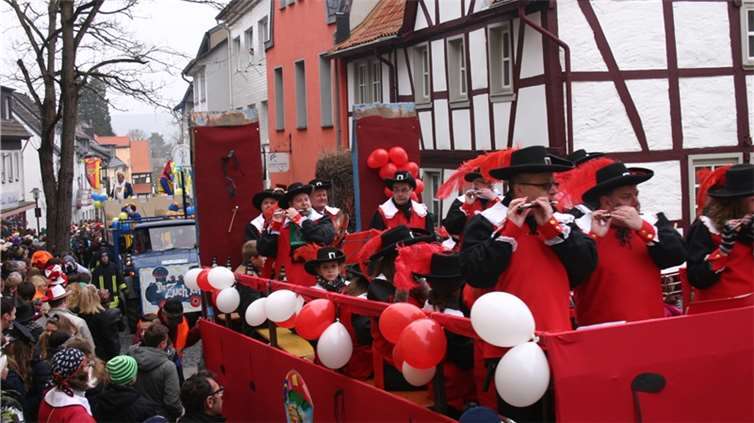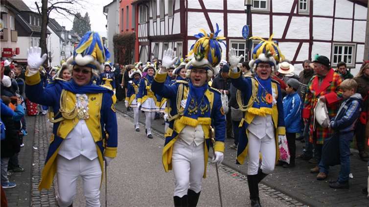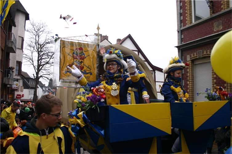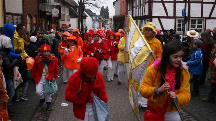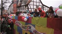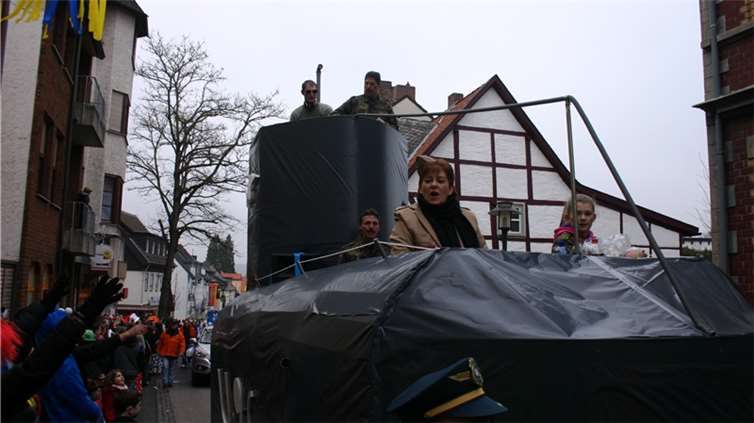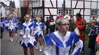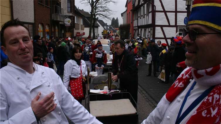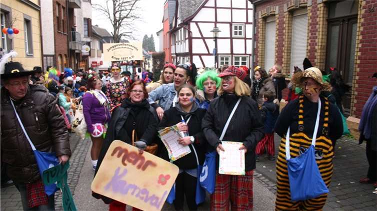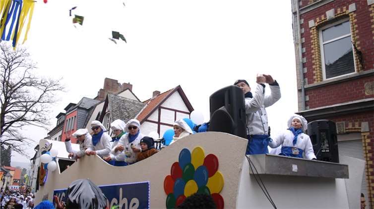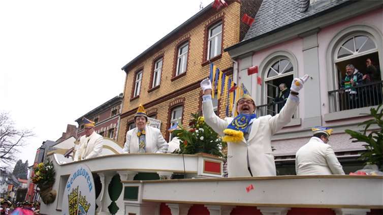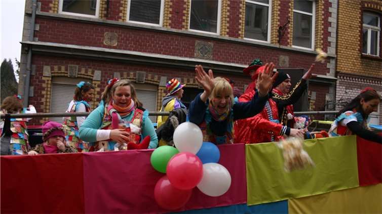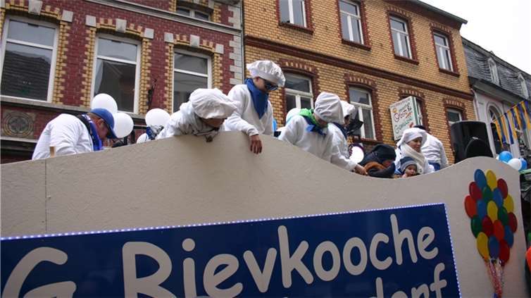 Natürlich waren auch die Westumer Jecken um ihren Chef Rudi Fuchs im Sinziger Zuch vertreten. Und die gaben sich mit allen Abteilungen und Gruppen nach den über die Bühnen gebrachten Zeltveranstaltungen und dem eigenen Zuch locker und entspannt, samt Verteilung des entsprechenden Gemüses aus dem Murreland. Eine eigene Abteilung im Zuch bilden mittlerweile die Rievkooche aus Bad Bodendorf mit gleich zwei Wagen und den Ahrtalmeisterinnen Blue Velvet als Fußgruppe. Auf dem Elferratswagen der Buben wurden Wirtschaftsministerin Eveline Lemke und Dechant Achim Thieser beim Kamellenwettwerfen gesichtet. Fest verankert sind die Sinziger Vereine. Allen voran der TV 08, der seinen Kinderprinz Benjamin I. (Sauer) auf die Reise schickte. Bunt und jeck die Sportfreunde Koisdorf und die Strengelaner feierten schon ihre elfte Teilnahme am närrischen Straßengeschehen.