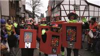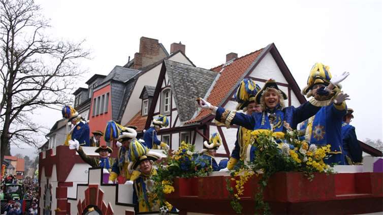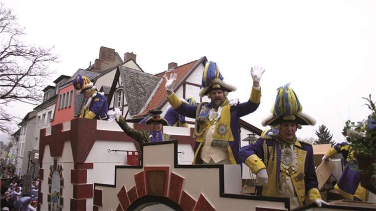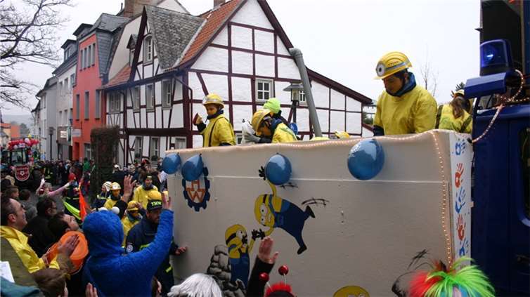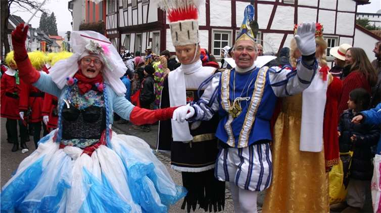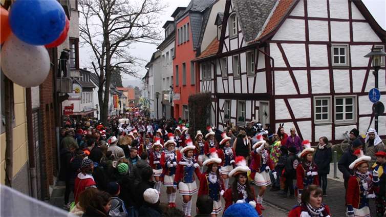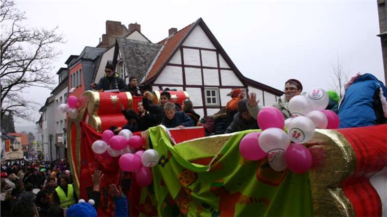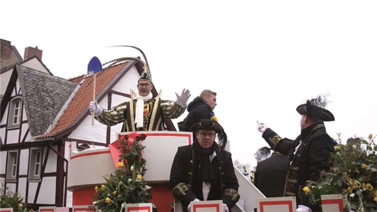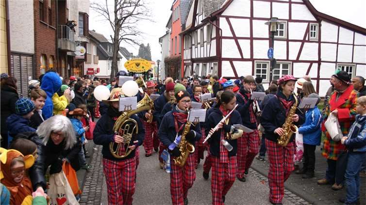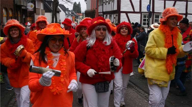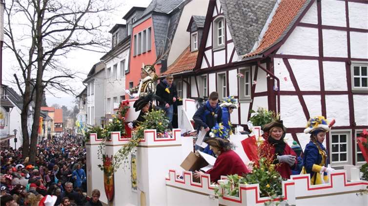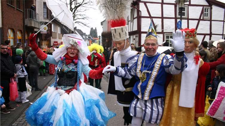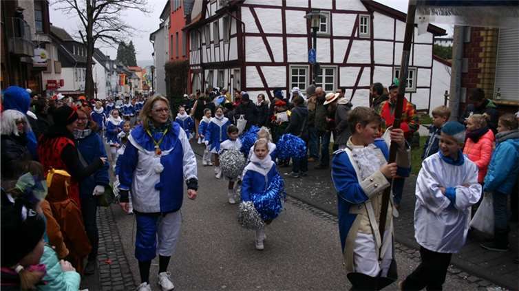 Natürlich waren auch die Westumer Jecken um ihren Chef Rudi Fuchs im Sinziger Zuch vertreten. Und die gaben sich mit allen Abteilungen und Gruppen nach den über die Bühnen gebrachten Zeltveranstaltungen und dem eigenen Zuch locker und entspannt, samt Verteilung des entsprechenden Gemüses aus dem Murreland. Eine eigene Abteilung im Zuch bilden mittlerweile die Rievkooche aus Bad Bodendorf mit gleich zwei Wagen und den Ahrtalmeisterinnen Blue Velvet als Fußgruppe. Auf dem Elferratswagen der Buben wurden Wirtschaftsministerin Eveline Lemke und Dechant Achim Thieser beim Kamellenwettwerfen gesichtet. Fest verankert sind die Sinziger Vereine. Allen voran der TV 08, der seinen Kinderprinz Benjamin I. (Sauer) auf die Reise schickte. Bunt und jeck die Sportfreunde Koisdorf und die Strengelaner feierten schon ihre elfte Teilnahme am närrischen Straßengeschehen.
