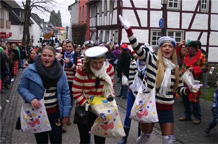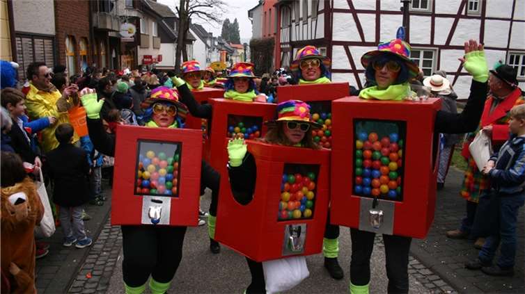Die Nachbarschaft „Knatsch-Jeck“ kam als Kaugummiautomaten. Die wirklich genialen und absolut farbenprächtigen Kostüme trugen die Sinziger Möhne. Ihre „Struwwel-Petras“ waren einfach der Hingucker. Junge Jecken waren natürlich mitten im närrischen Zuggeschehen. Mit eigener Abteilung sozusagen. Groß das Aufgebot des Sinziger HoT und des Lebenshilfehauses. Und die machten ironisch-satirisch ein wenig Bundespolitik, „SifüKadA“ war ihre Initiative. Diese steht für „Sinzig für die Karnevalisierung des Abendlandes“. „Mehr Karneval deutschlandweit“, so ließen sich die knallharten Forderungen zusammenfassen. Die Abituria des Rhein-Gymnasiums ist mittlerweile auch fester Bestandteil im Zuch. Nach dem Zuch wurde in Sinzig Straßen und Kneipen feste weitergefeiert. BL